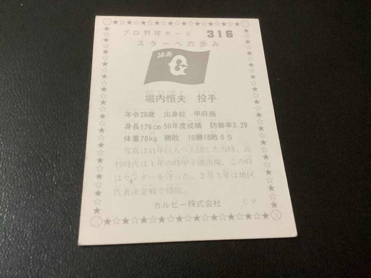 美品 カルビー76年 堀内(巨人)No.316 プロ野球カード