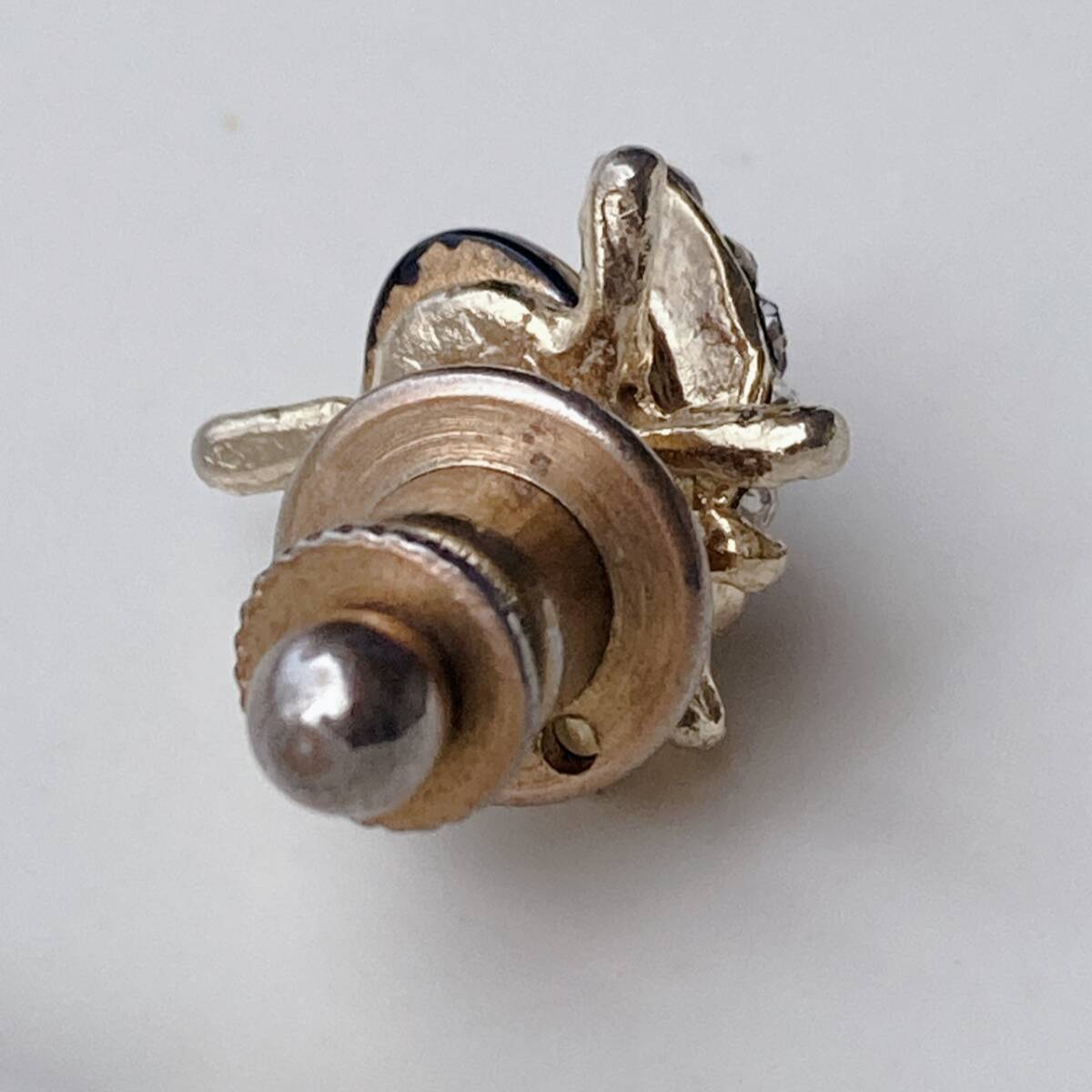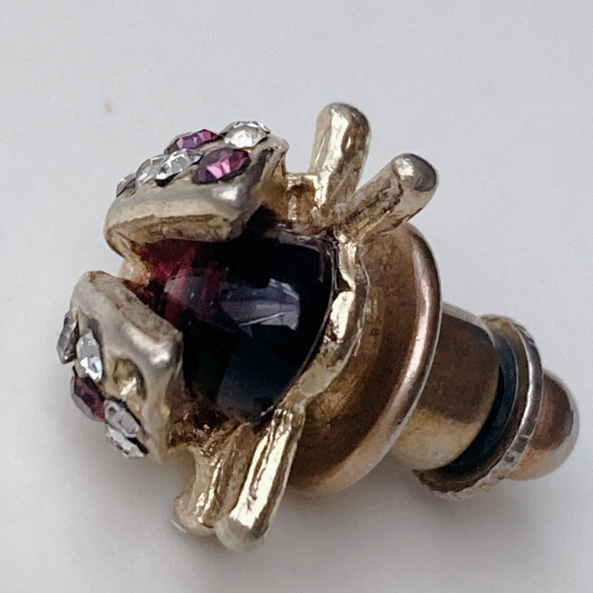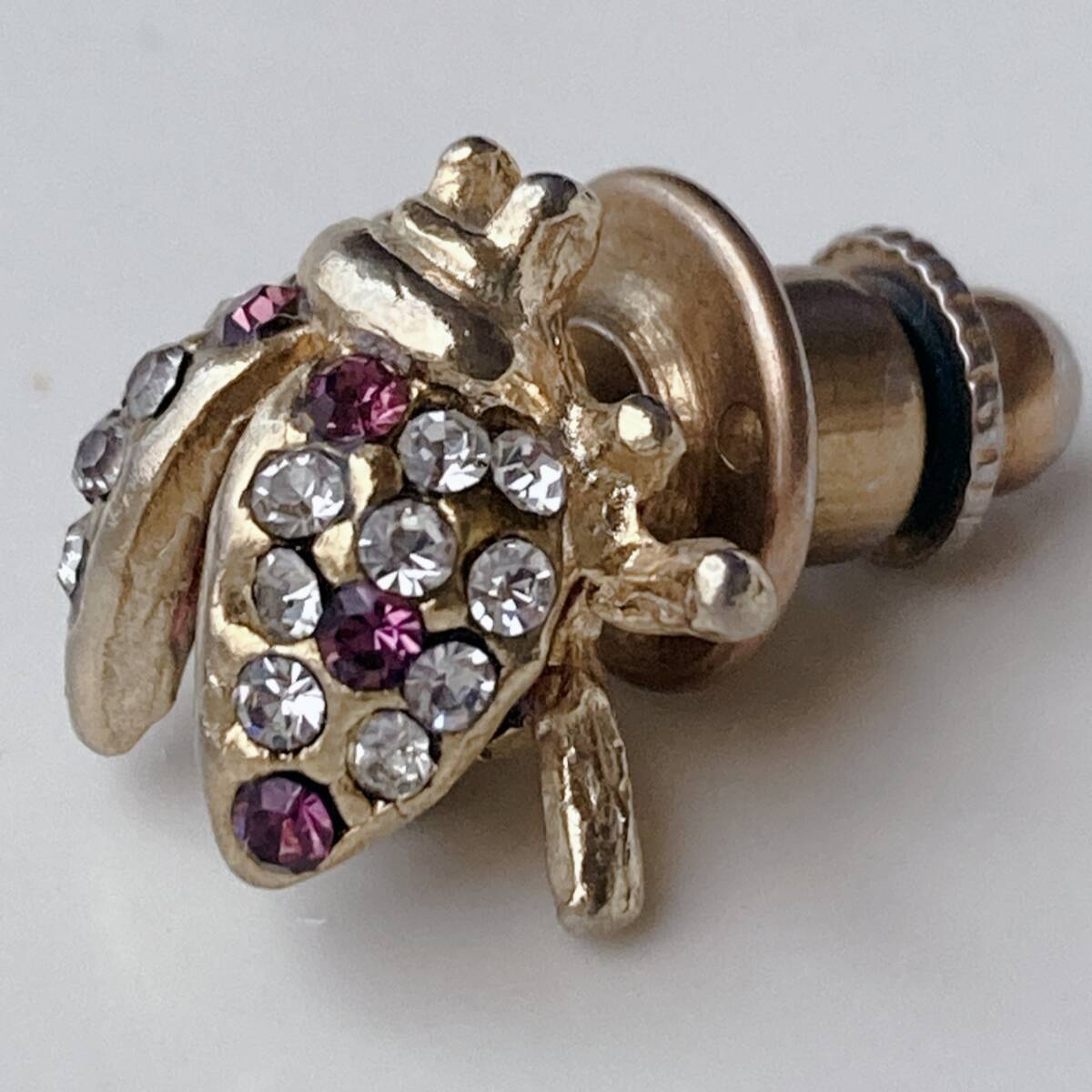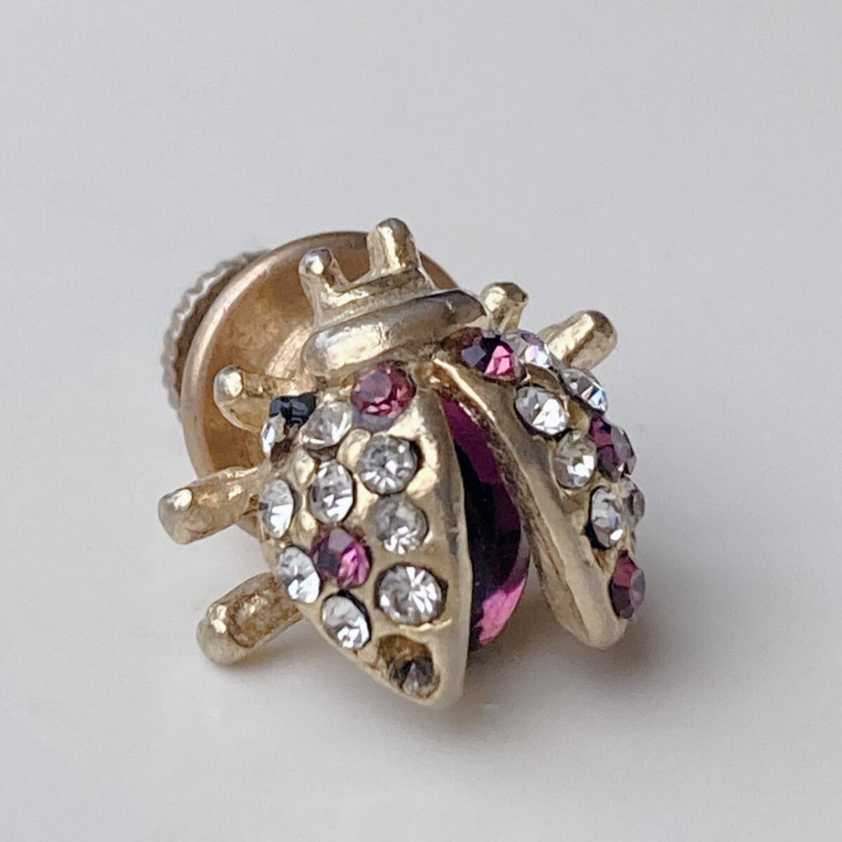ヴィンテージピンバッジ てんとう虫 ピンク クリスタル タックピン ブローチ ゴールドトーン 落石有☆vintage jewelry accessories F0263
