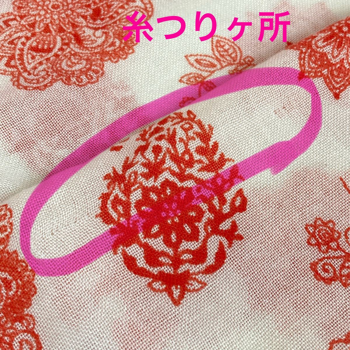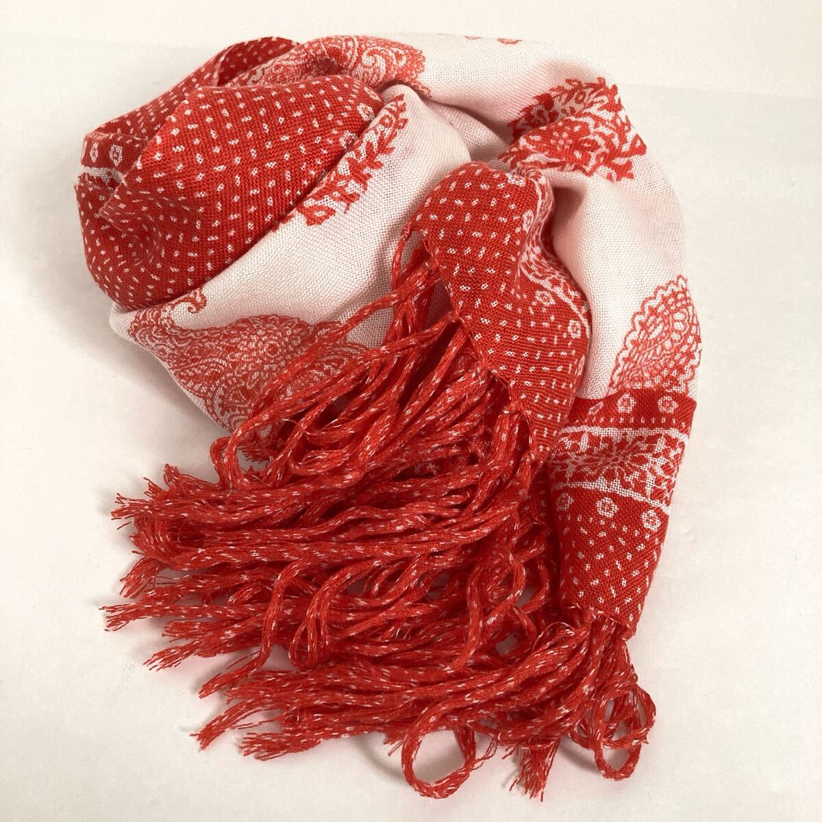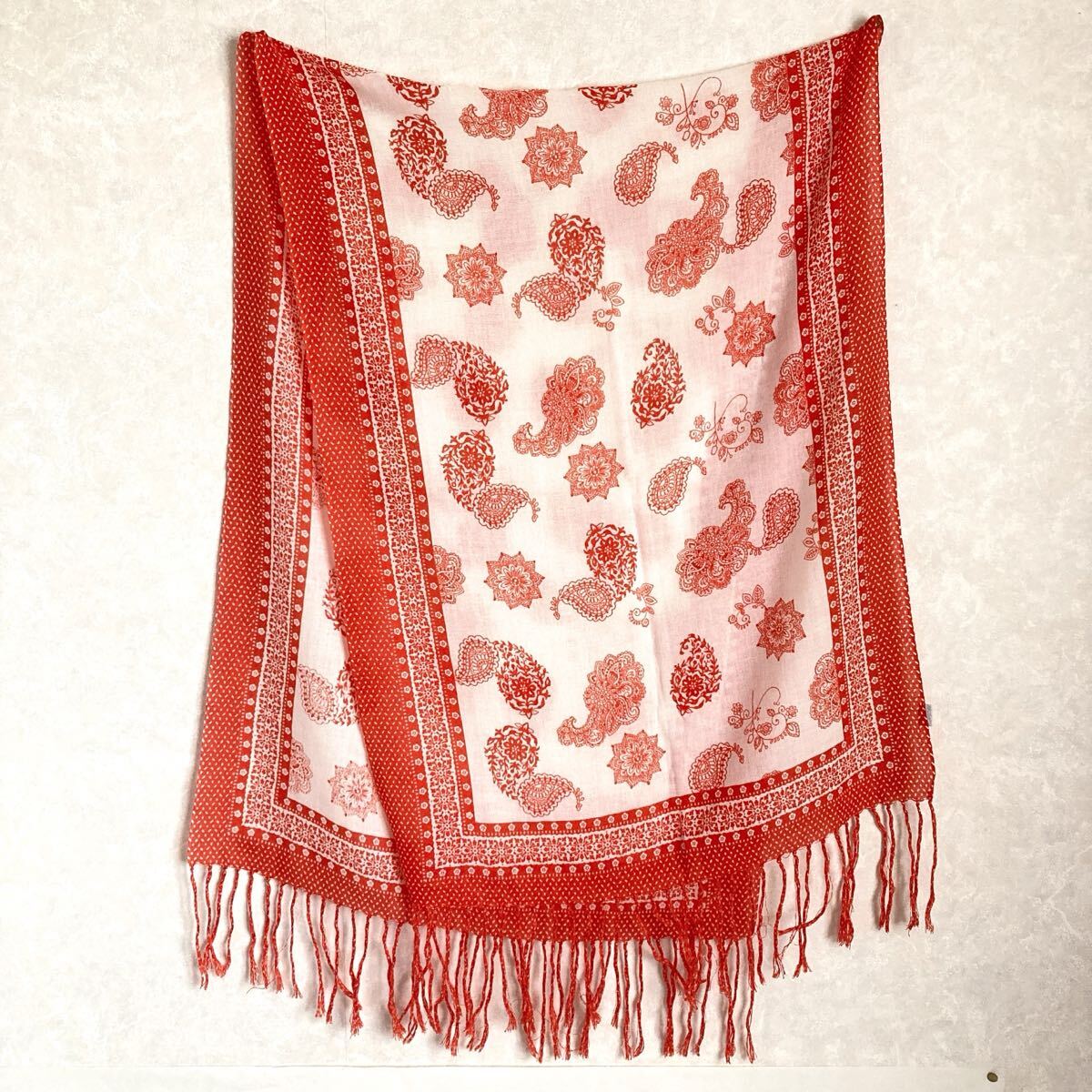 heather ヘザー ペイズリー柄 ストール 朱色×クリーム系カラー コットン 糸のつりか所あり USED