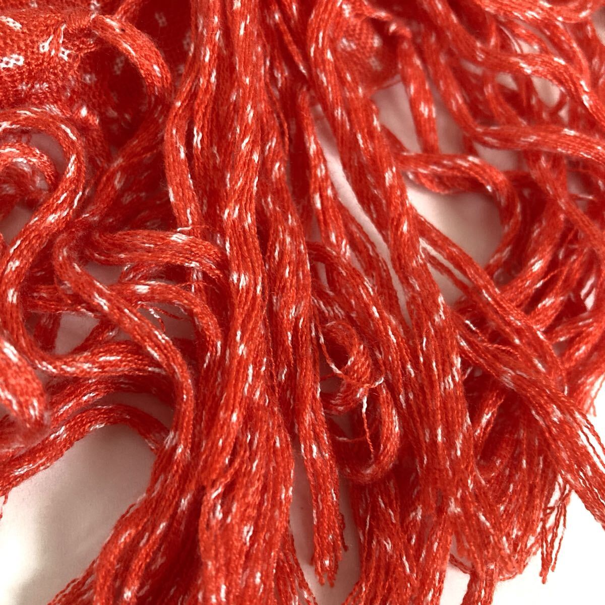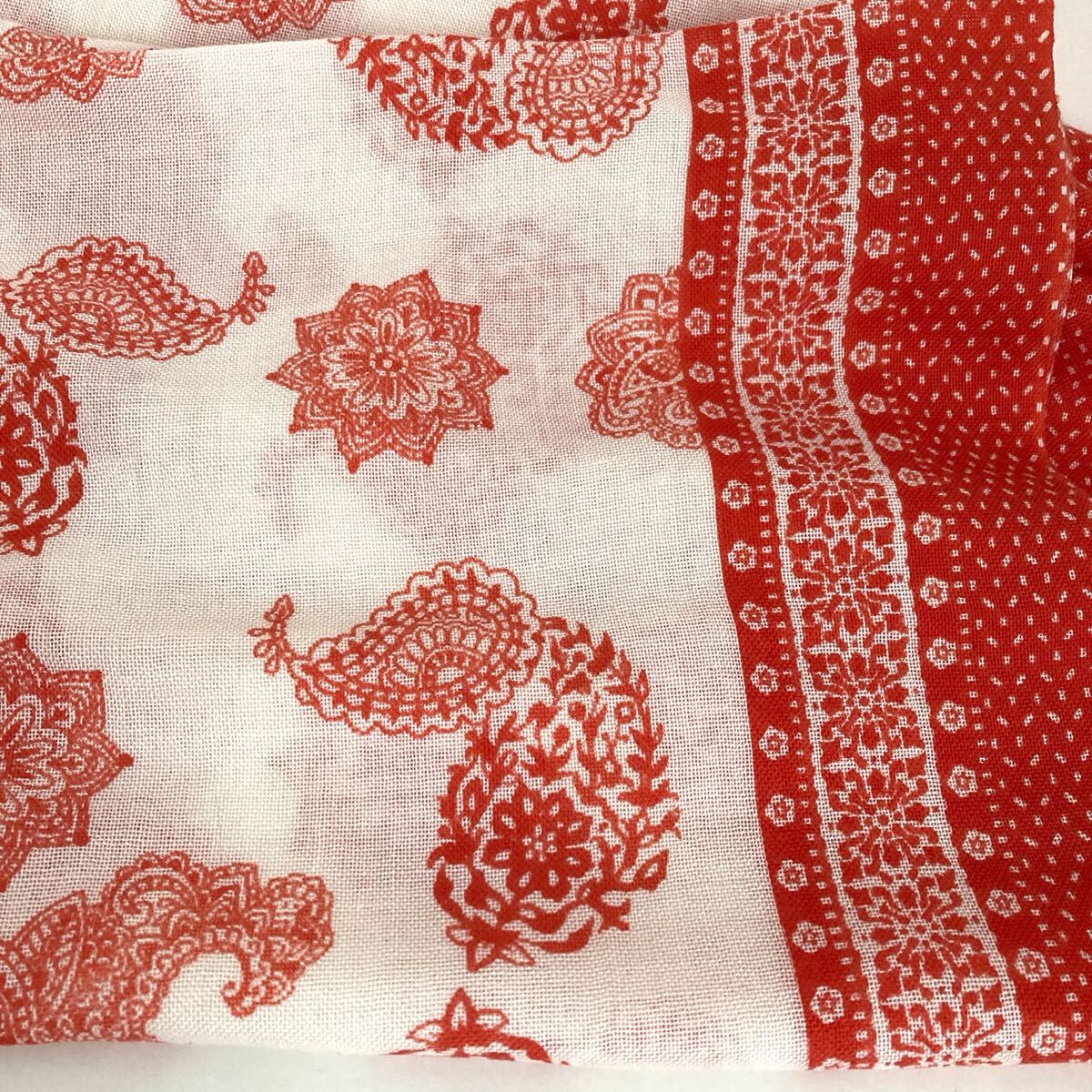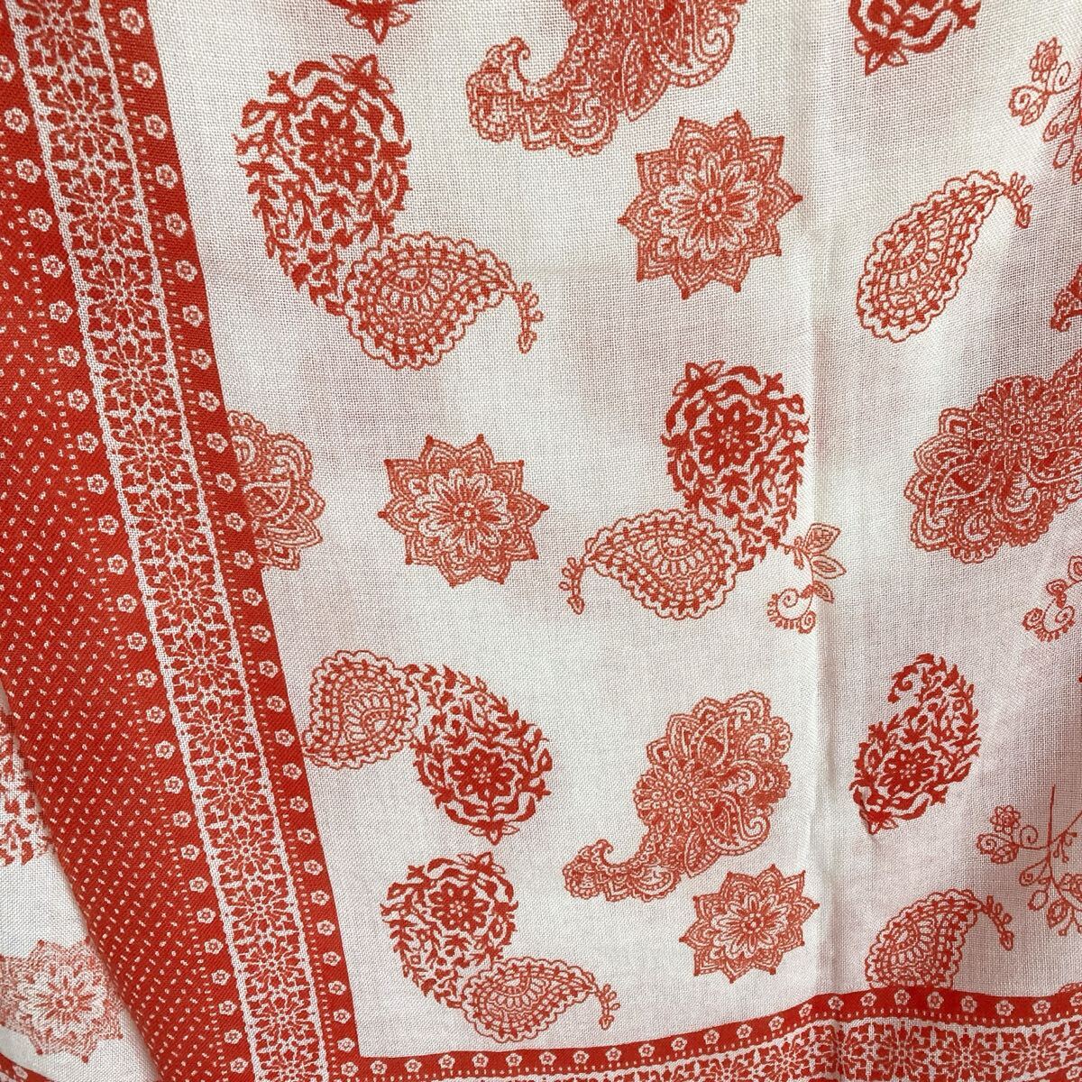 heather ヘザー ペイズリー柄 ストール 朱色×クリーム系カラー コットン 糸のつりか所あり USED