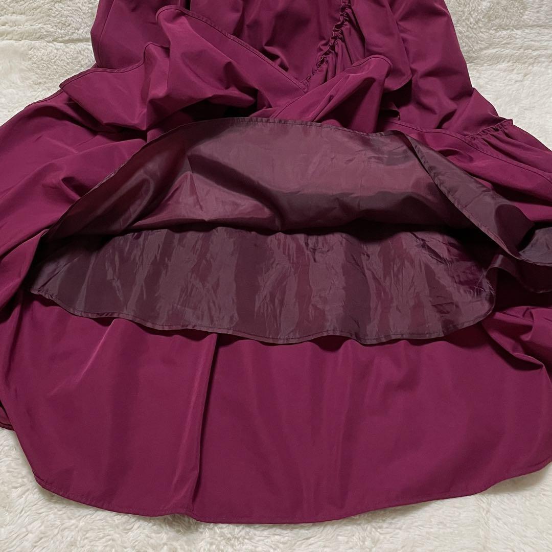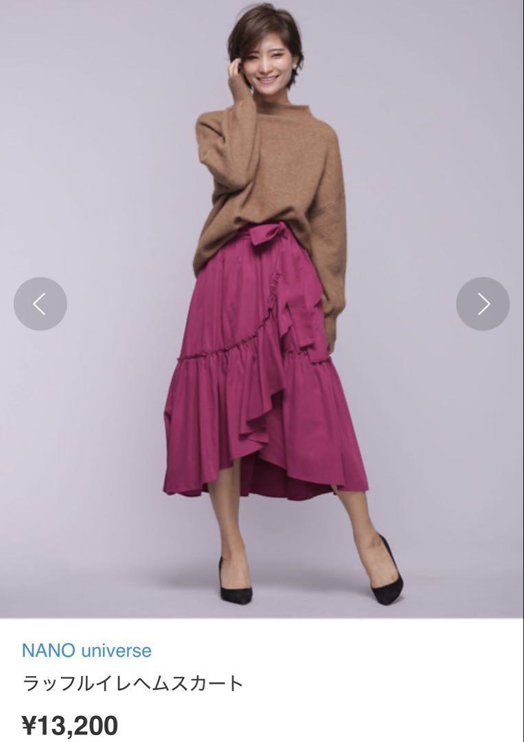 ラッフルフリルを大胆にあしらったイレギュラーヘムのスカート。ボリューミーなフリルがドラマティックに揺れる、動きのあるデザインが印象的。ランダムに前後差を付けた着丈が今年らしい雰囲気です。ティアードで切り替え、ギャザーをたっぷり寄せた女性らしいディテールも素敵。