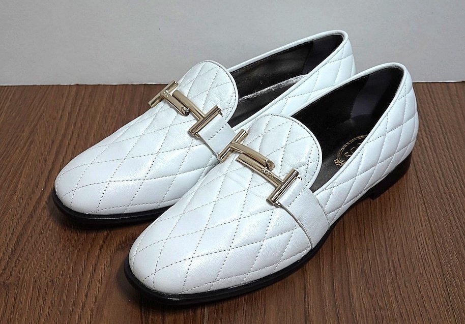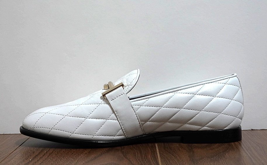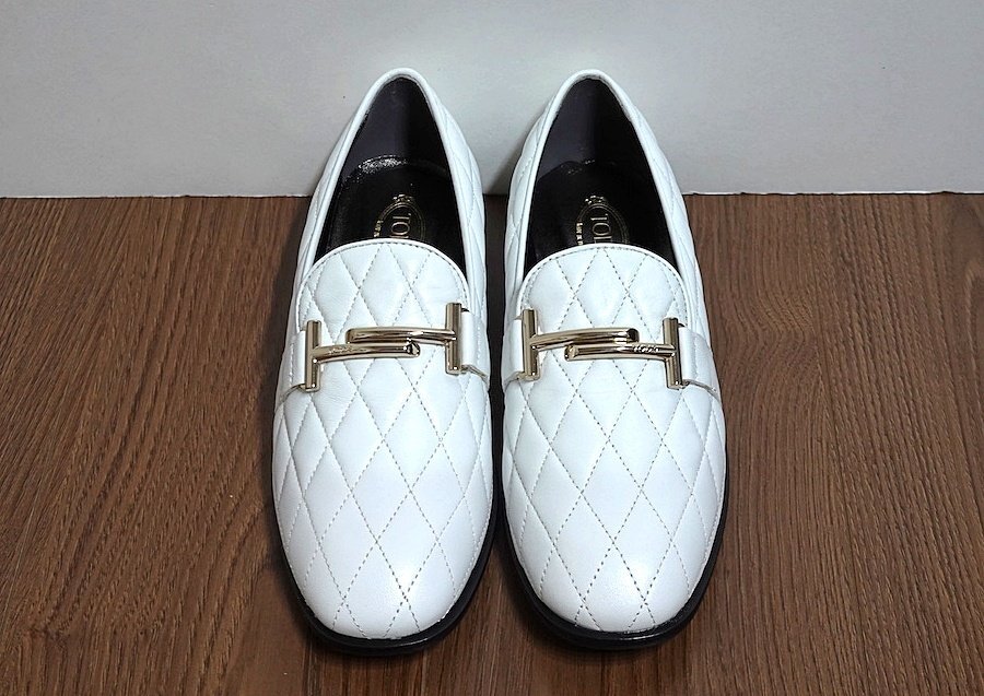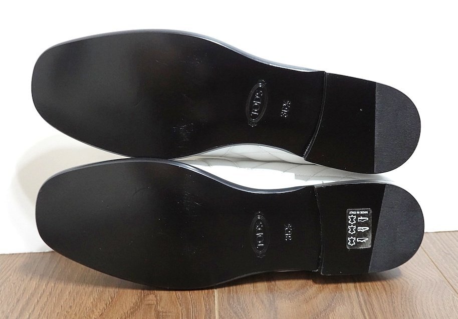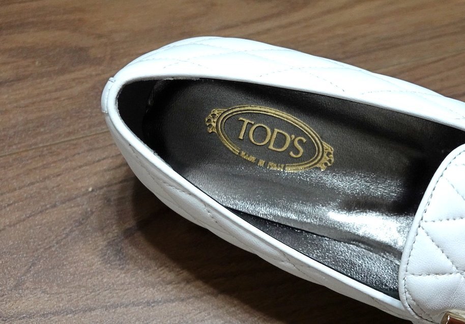 新品同様 未使用 TOD'S トッズ ダブルT キルティング ローファー シューズ レザー ホワイト レディース 36 1/2 22.5-23cm 革靴