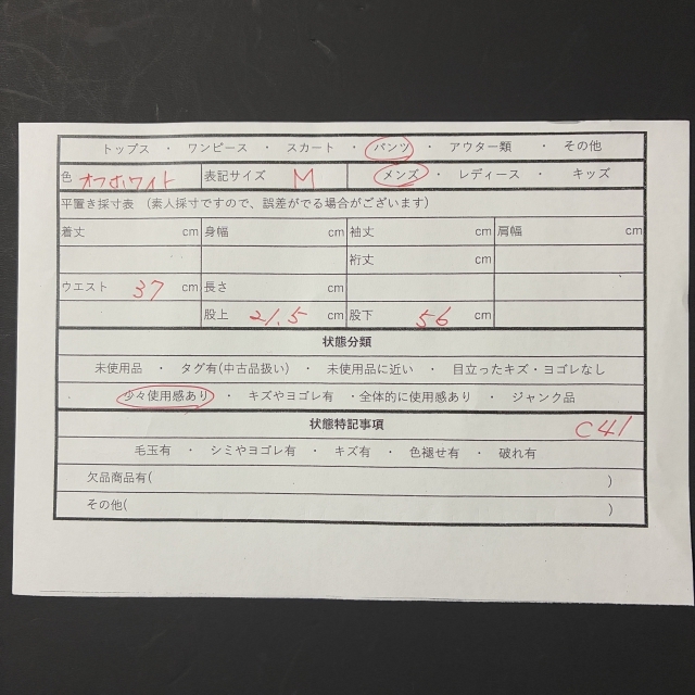 C41◇THE SHOP TK | ザショップティーケー クロップドパンツ オフホワイト メンズ Mサイズ 中古品