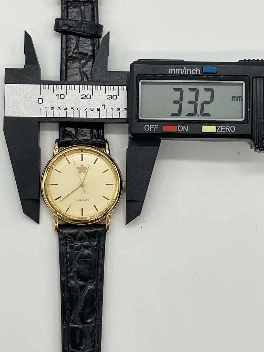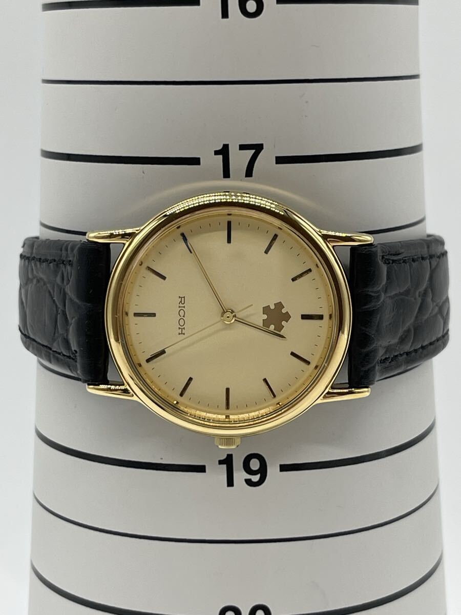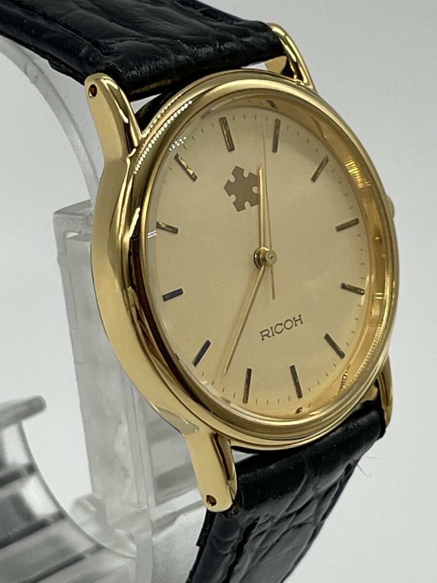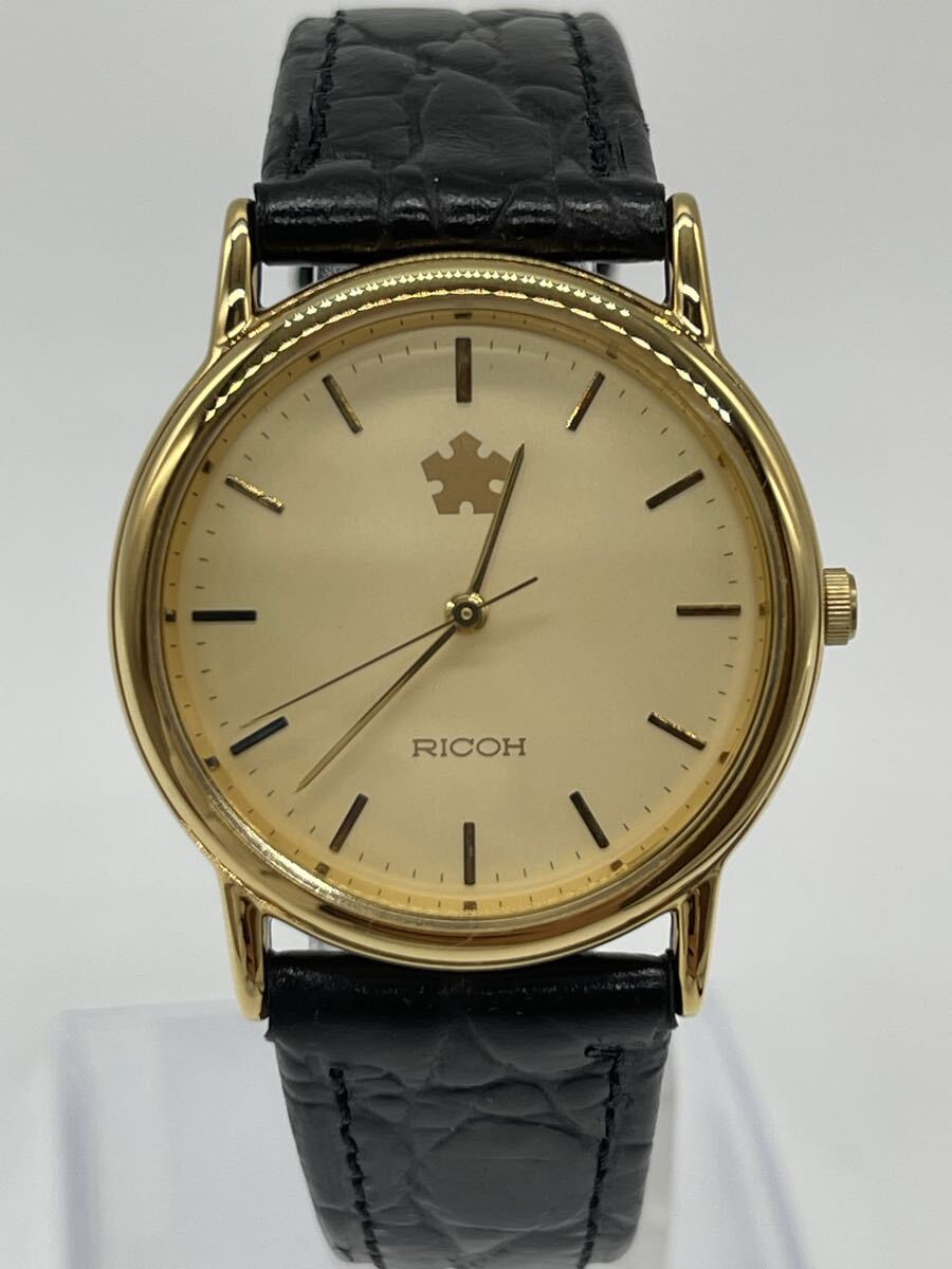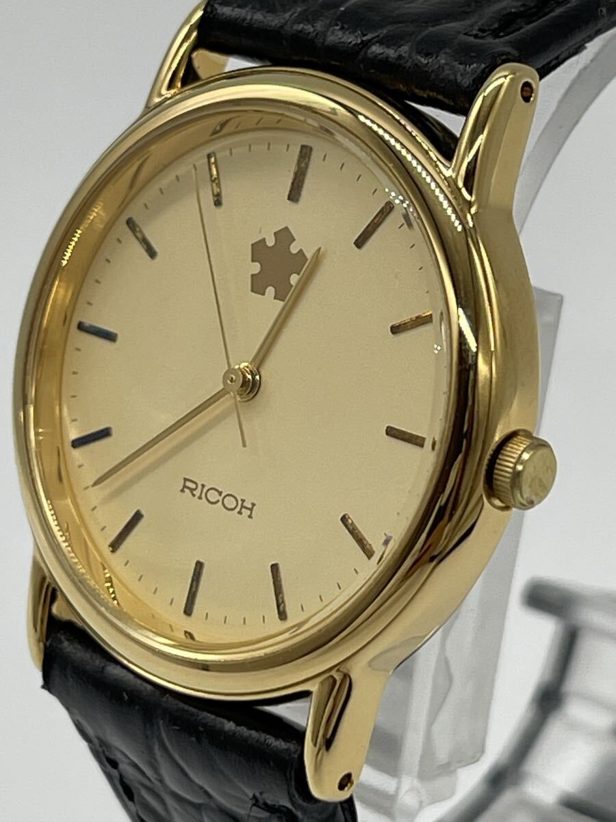 RICOH watch Japan Quartz Analog wristwatch Gold dial Men’s Women’s Unisex Rare Limited edition Commemorative model Non-sale item Vintage Collectible Battery replaced Japan only Anniversary watch
