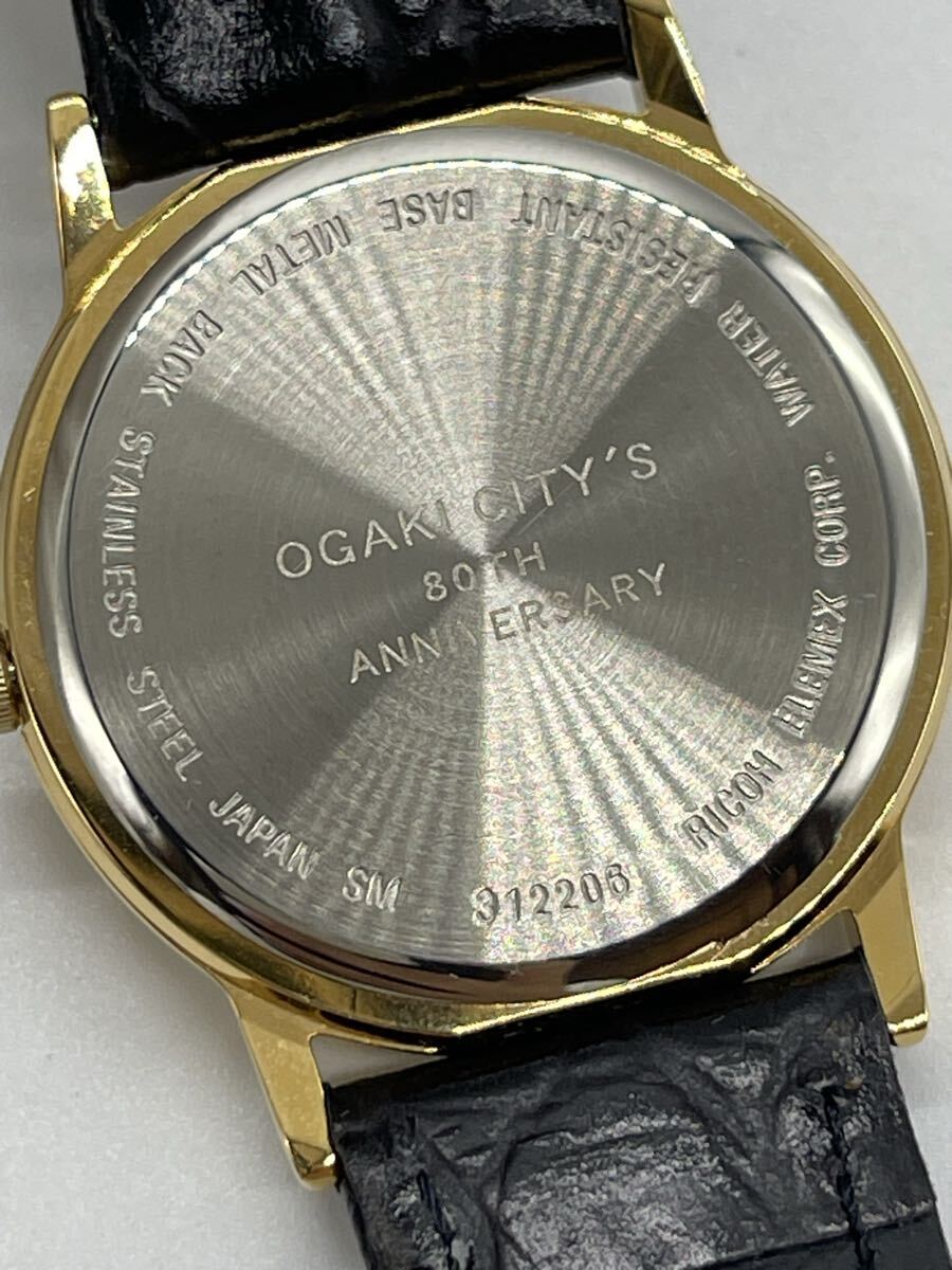 [Rare / Working] RICOH Analog Wristwatch Gold Dial Commemorative Model OGAKI CITY 80th Anniversary Battery Replaced