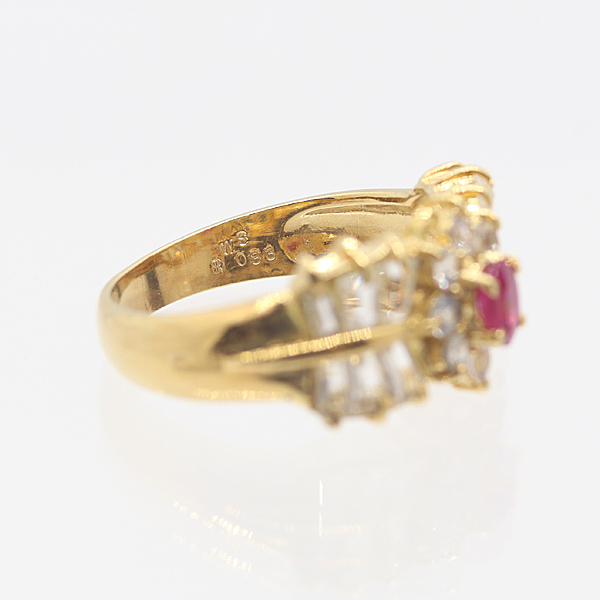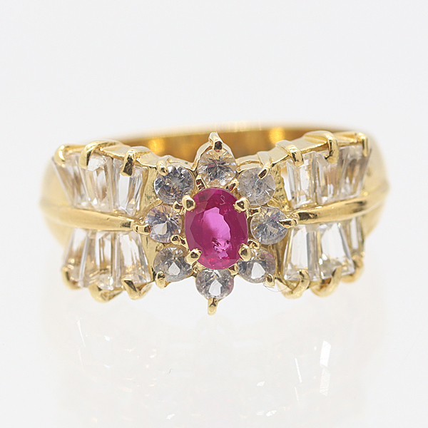 1円 美品 K18 リング 赤色石 0.33 4.8g 11号アクセサリー ジュエリー 0028600 9RKT AKO KTU