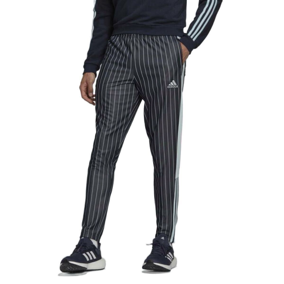 ピンストライプと洗練されたカラー使いがスタイリッシュな、このトラックパンツは、吸湿性に優れたAEROREADY素材が、ドライで爽快なはき心地をキープする。