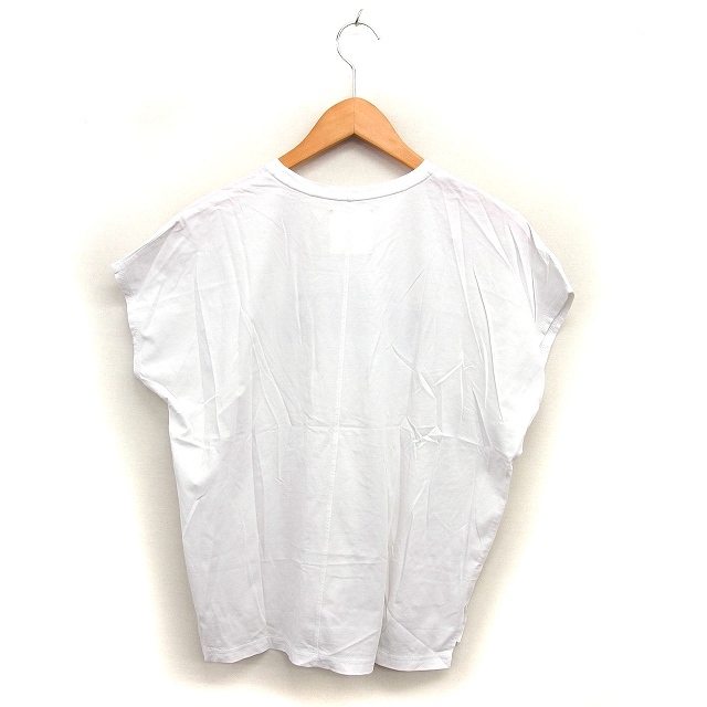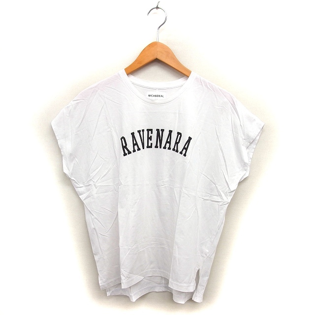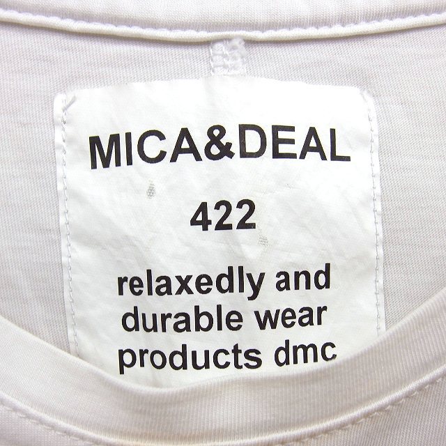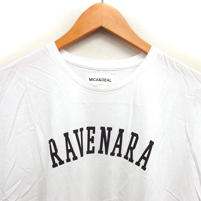 マイカ&ディール MICA&DEAL クルーネック カットソー スリット 透け感 コットン 綿 プリント 英字 半袖 F 白 ホワイト /NT15 レディース