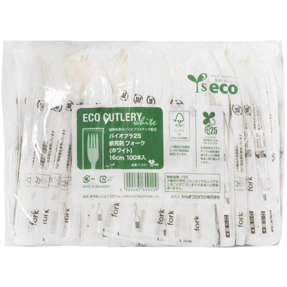 植物由来のバイオプラスチックを配合して製品化したカトラリー石油由来のプラスチック使用量を減らすことで自然環境への負荷を軽減しますバイオマスマーク認定商品お得な100本入り