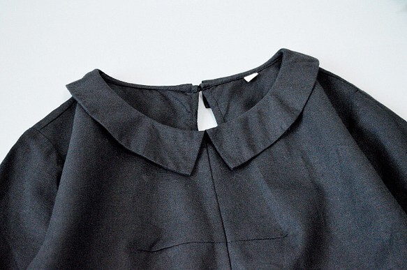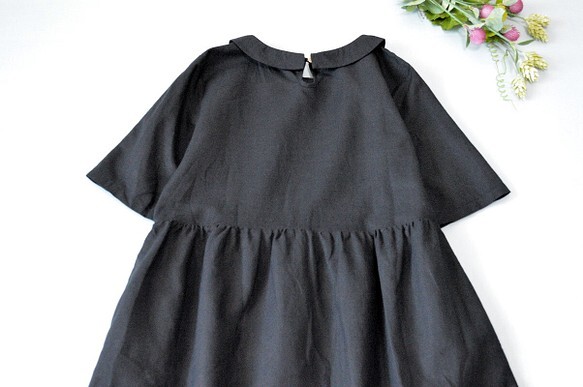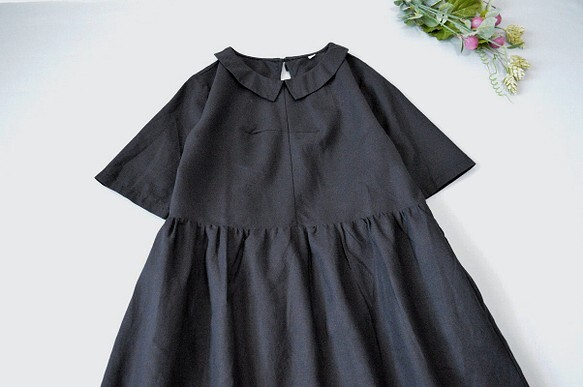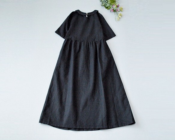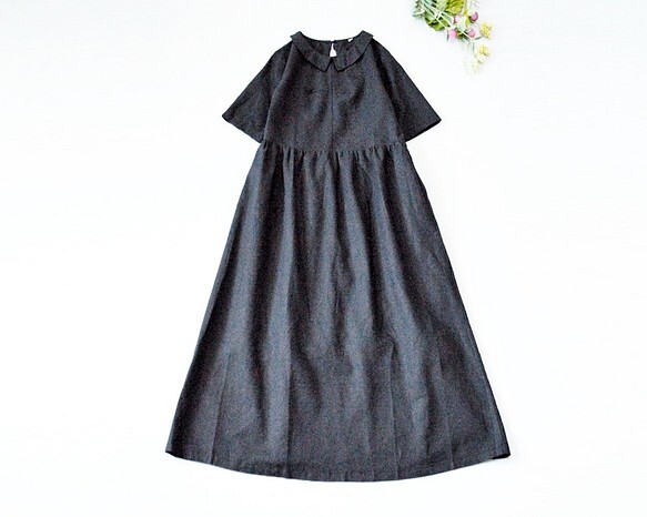 【M】綿麻小衿ポケット付き大人可愛いシンプルな半袖ロングワンピース♪