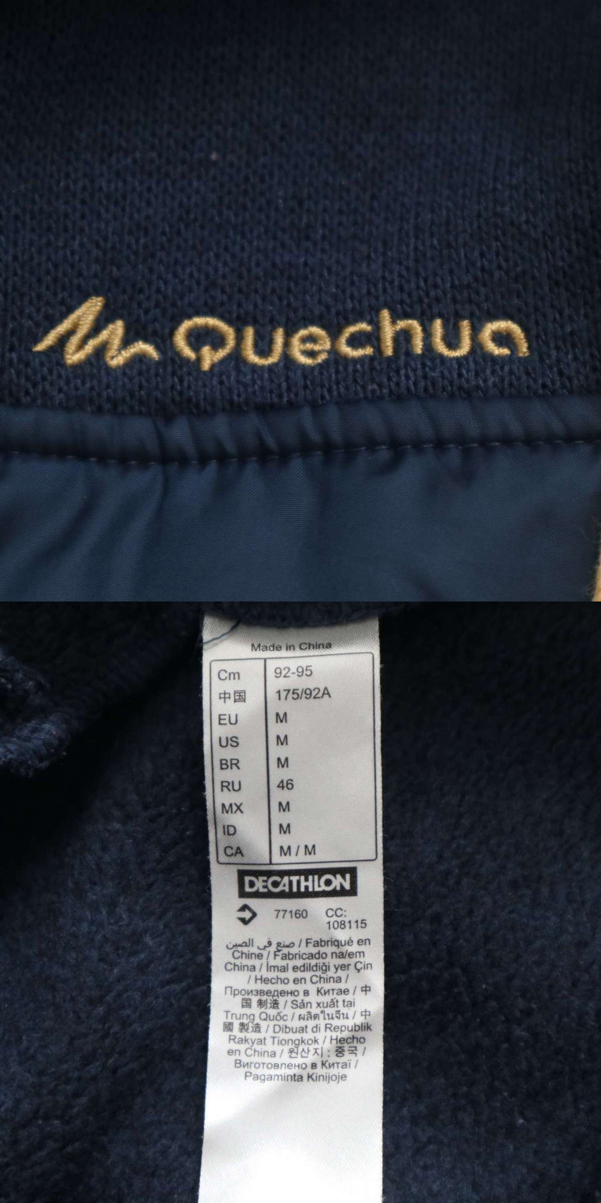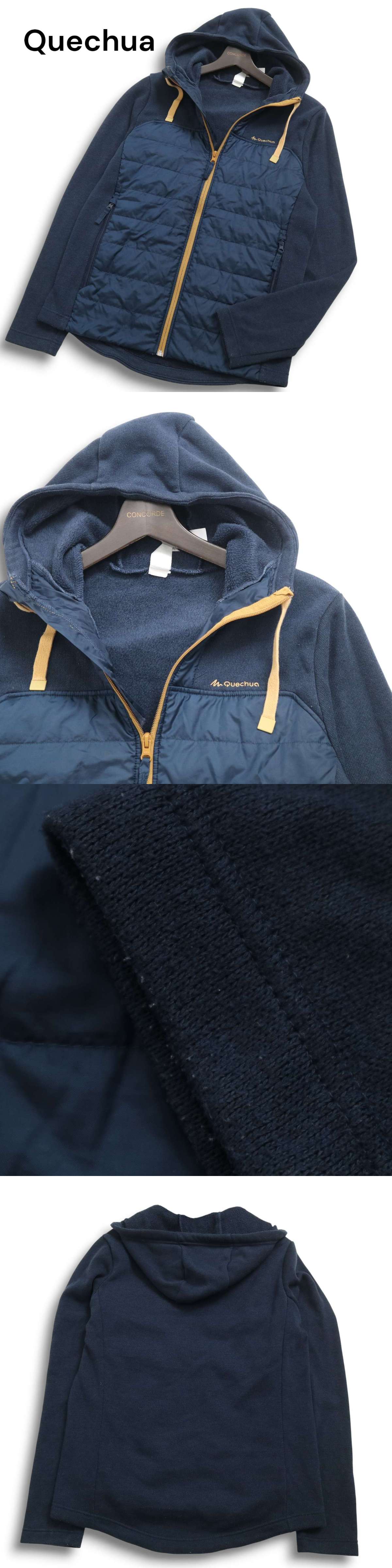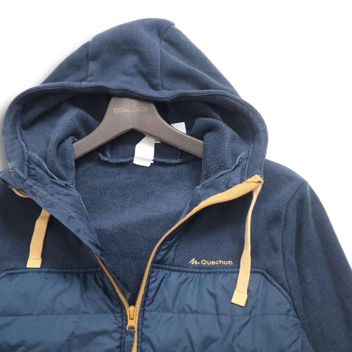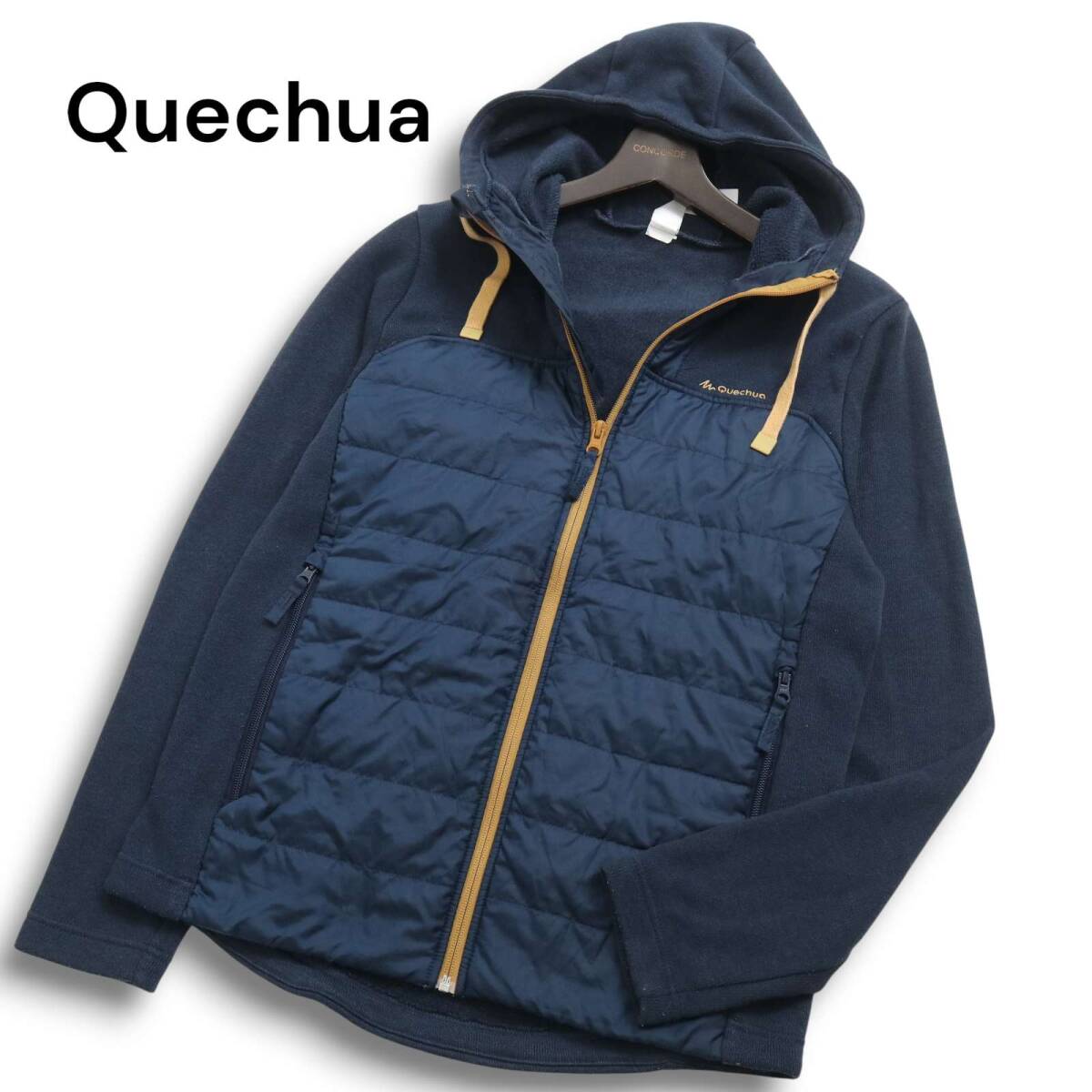 Quechua ケシュア ロゴ刺繍★ フリース ハイブリッド ジャケット パーカー フーディー ブルゾン Sz.M メンズ 紺 アウトドア