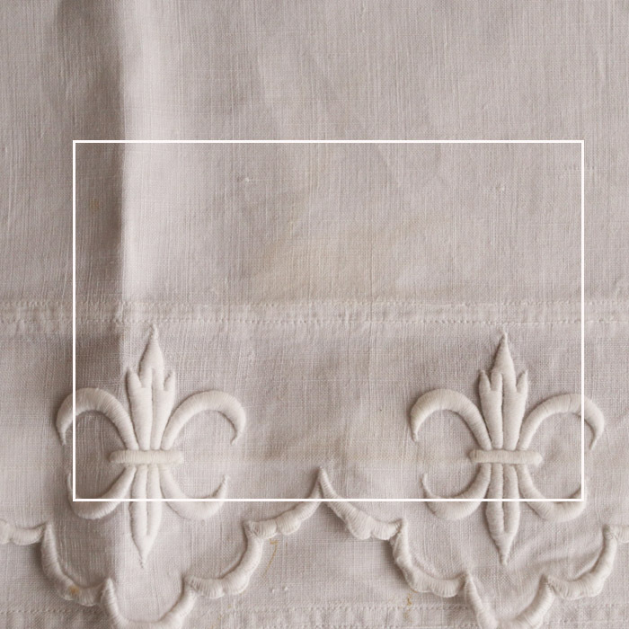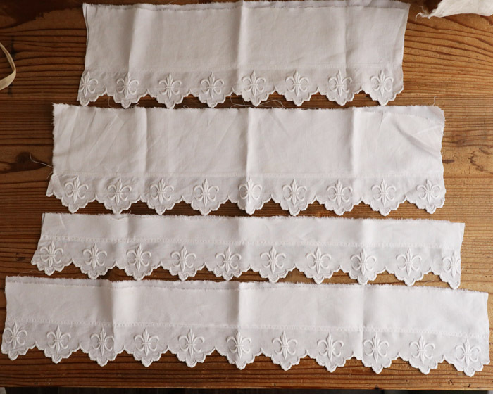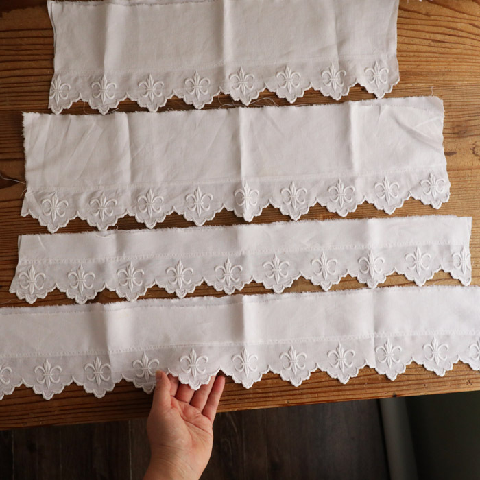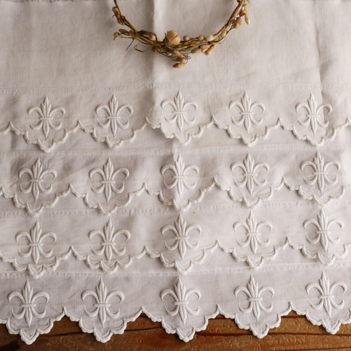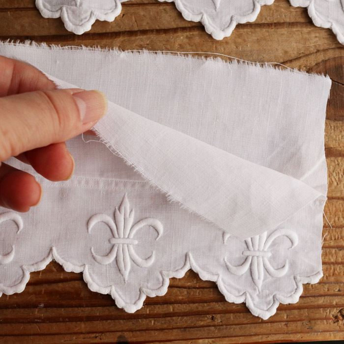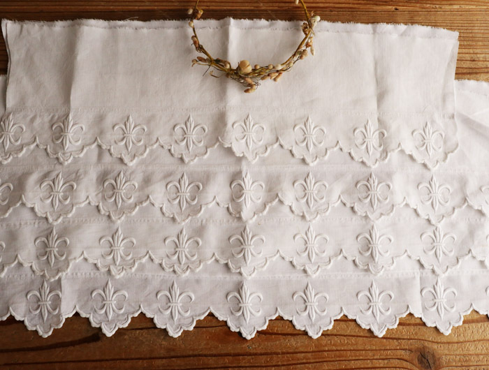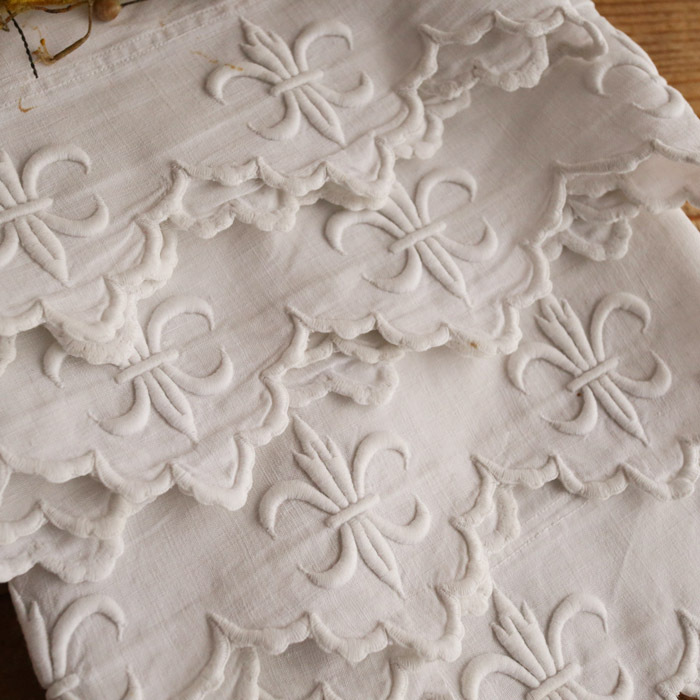フルールドリス(ユリの紋章)が丁寧に手刺繍された美しいレース4枚セットです。