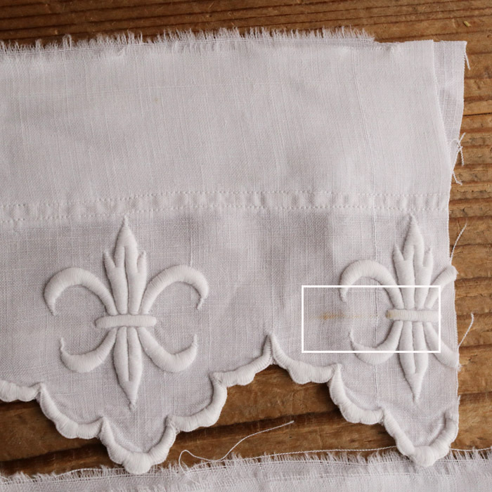 元はピローケースから切り取られたもので、縫い目から上は二重仕立てになっています。