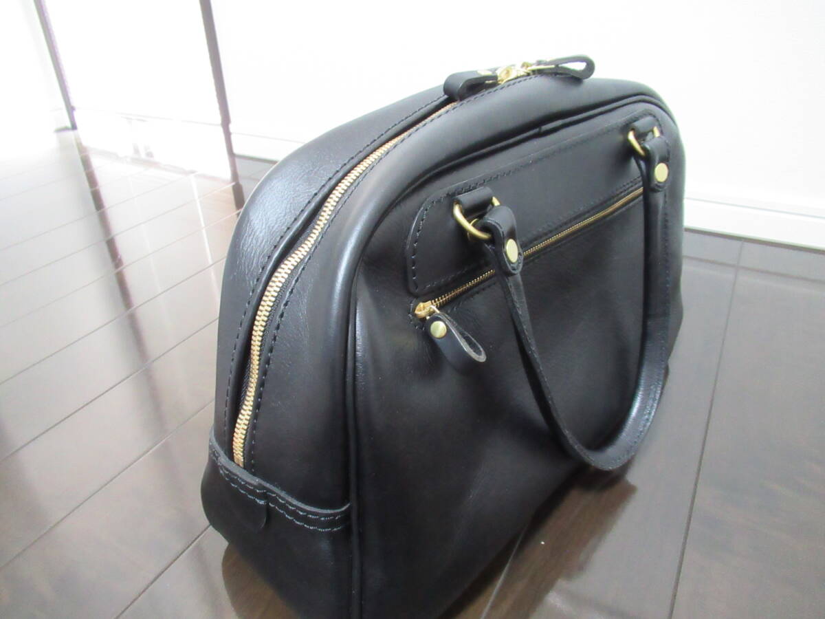 ヘルツのマディソンバッグ、革色は黒、サイズはW43H26マチ14センチです。2年ほど前に購入し、1-2回しか使っていません。持ち手が長く肩掛けも可能です。クリームを塗って手入れすれば艶が出てくると思います。NCNRでお願いします。