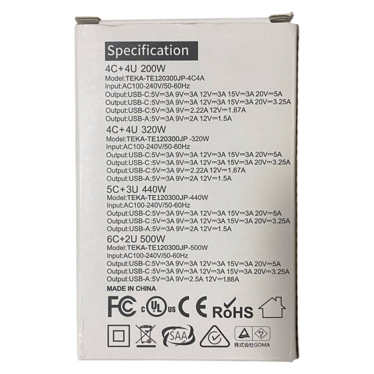 合計500Wの高出力で、8台のデバイスを同時に急速充電できます。