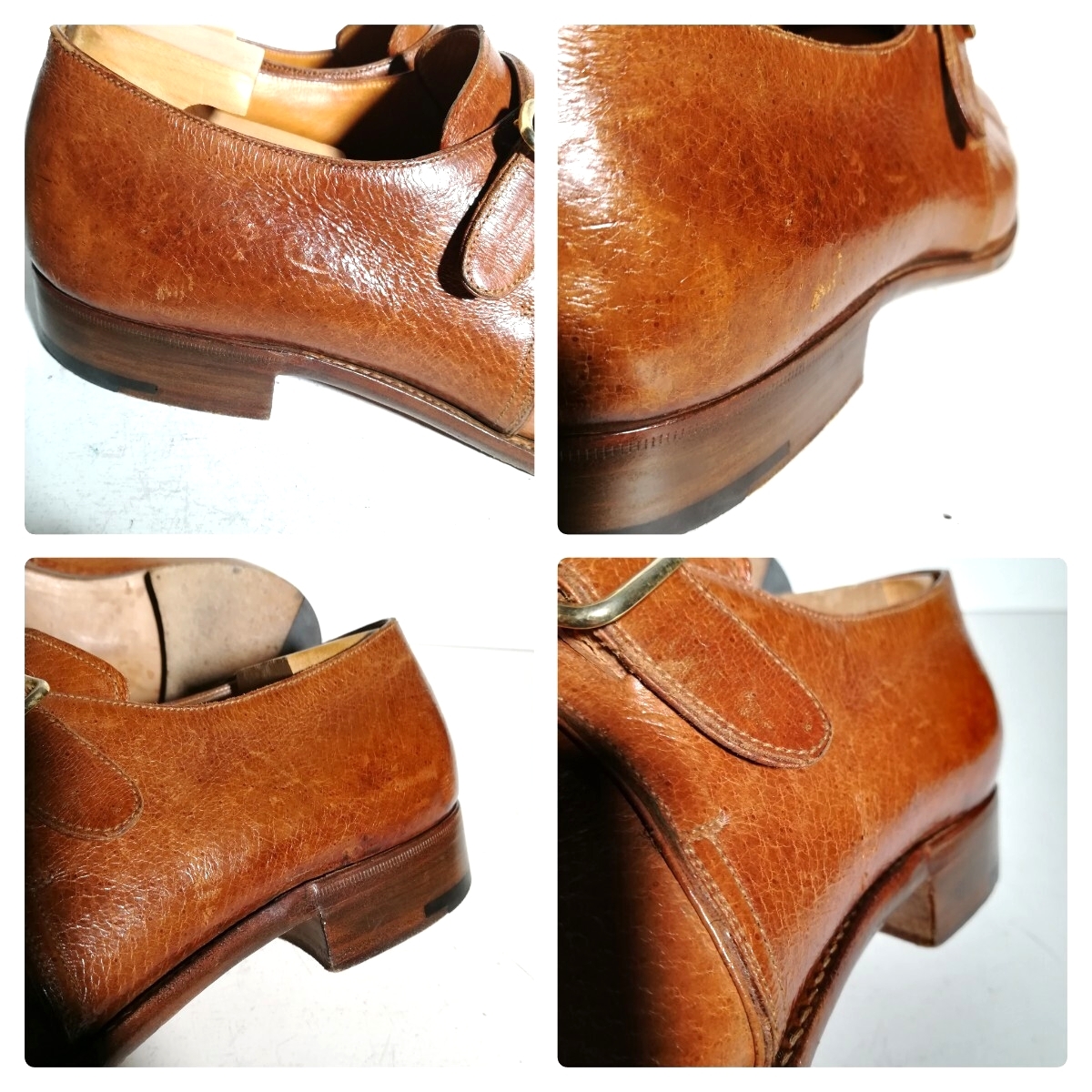 | 商品説明 | 埼玉県からの発送になります。 おてがる配送 宅急便にて発送致します。 発送は落札してから1~3日見ていただければと思います。諸事情により発送が遅れる可能性がございます。 中古品のジンターラ モンクストラップシューズです。 商品詳細 お色 ブラウン サイズ 43 恐らく革靴サイズ27.5~28.0cm程度 アウトソール全長約32.5cm 全幅 約11cm (素人採寸ですので多少の誤差はご容赦ください) ●状態①「外観」 革鳴り、変色・汚れ、えぐれ・剥がれ、履きジワよれ、擦れ、傷、ソール表面に粘着性のペタ付きがございます。 ●状態②「ソール・インナー」 ・インソールロゴは比較的綺麗に残っています。 ・踵の削れは3mm程度ございます。 ●その他・付属等 シューズキーパーや箱、袋といった付属品はございません。 神経質な方はご購入はお控えくださいますようお願い致します。 こちらに重大な過失があった場合のみ返品可(それ以外のサイズ違い等といった理由は不可。) また、お届けしてから1週間以上経過した物についても不可とさせていただきます。上記返品期限経過後の取引ナビ等々からの返品についてのご連絡に関しては対応致し兼ねますのでご了承ください。 出品商品に関しましては他で譲り先が見つかった、在庫処分等の理由で予告無く出品を取り下げる場合もございますので、予めご了承ください。 ※領収書の発行は受け付けておりません。 見落としている傷や汚れ、また中古品などには検品時に気づけないような経年の使用や保管による内部劣化や消耗などがある可能性が御座います。また、シューキーパーを入れて撮影しておりますので実際と印象が異なる場合がございます。 重ねてになりますが、ご理解のある方だけ、ご入札下さいませ。 商品はプチプチに包装して発送致します。スエード素材の商品はプチプチの跡が付く可能性がございますので、ブラシや手で均していただくようお願い致します。 商品写真は撮影時の明るさや光の当たり具合、お使いのディスプレイ(彩度、明るさの設定)等によって、実物の色味と差が生じる場合がございます。 また、当方は素人ですので予めご了承ください。 他にも様々出品しておりますので、どうぞご覧ください ↑↑↑↑↑↑↑↑↑↑↑↑↑↑↑↑ ■決済金額・決済方法■ 【決済金額】 落札価格+送料が決済金額となります。 【決済方法】Yahoo!かんたん決済(クレジットカード、コンビニ、銀行振込、PayPay等々)にてお支払いください。 Yahoo!かんたん決済お支払い期限内にお支払いお願い致します。 ご落札頂いた際にこちらから連絡をすることは基本的にはございません。重要な連絡事項がある場合はご連絡しますのでよろしくお願い致します。 ●お問い合わせ等、気づかないことがあり即答できない場合がありますので、あらかじめご了承ください。 また、対面や電話でのお取引やご対応は承っておりません。 以上の内容をご理解して頂いた方のみ入札下さい。 埼玉県公安委員会古物商許可衣類商 (写真機類・事務機器類・道具類・機械工具類・皮革ゴム類) 第431070035500号 |