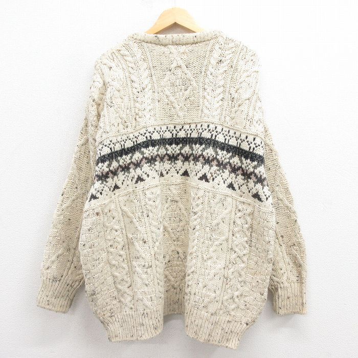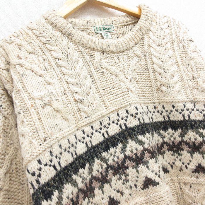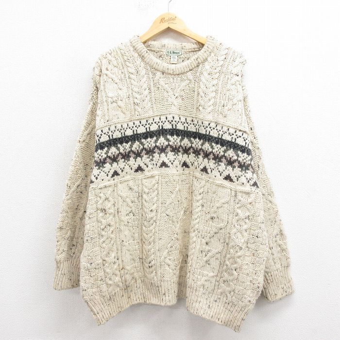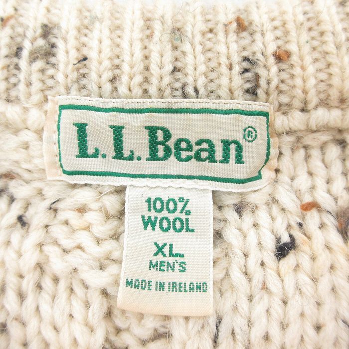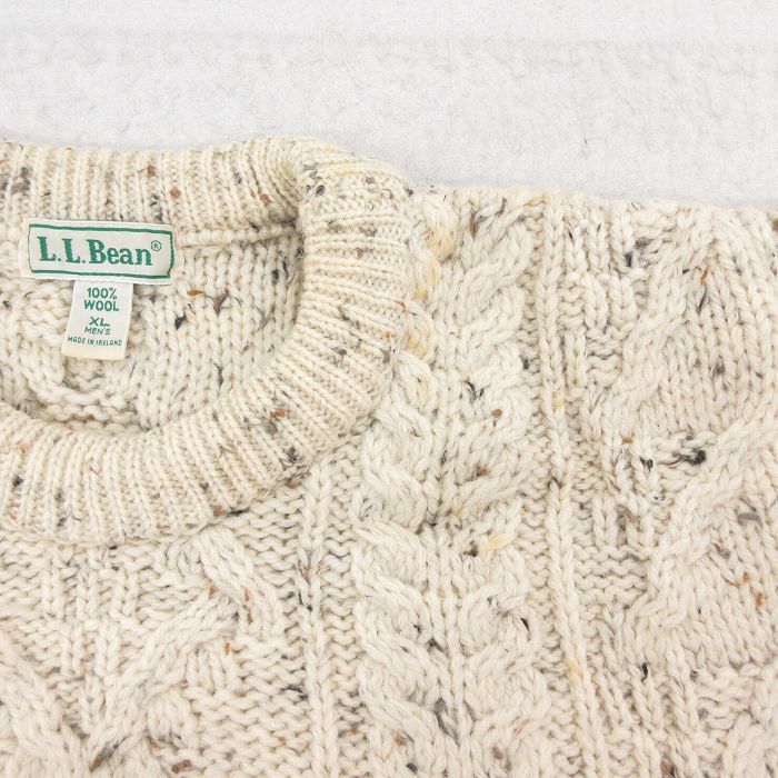 【商品名】 XL★古着 エルエルビーン 長袖 ケーブル セーター メンズ 90年代 90s 大きいサイズ ウール クルーネック アイルランド製 生成り