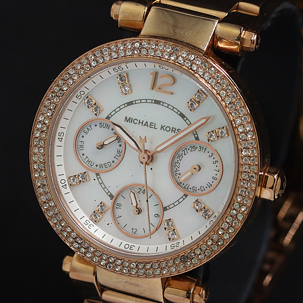 1円 稼働 マイケルコース ダイヤベゼル MK-5616 QZ シェル文字盤 レディース腕時計 3835000 9BJY MST