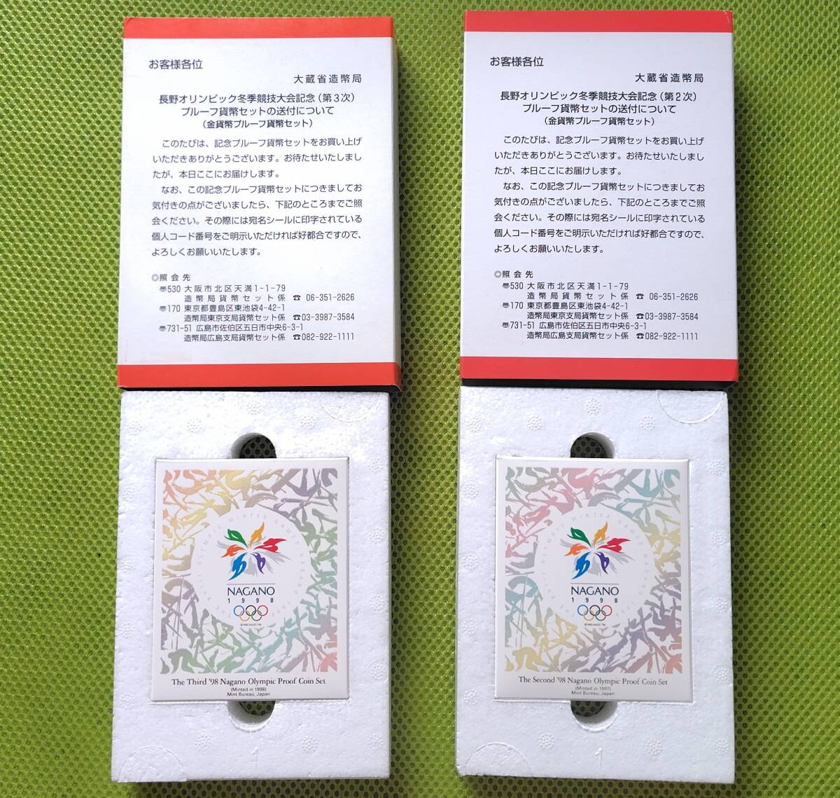 1998年(平成10年)大蔵省造幣局発行のプルーフ金貨幣が入っていたケース2個セットです。