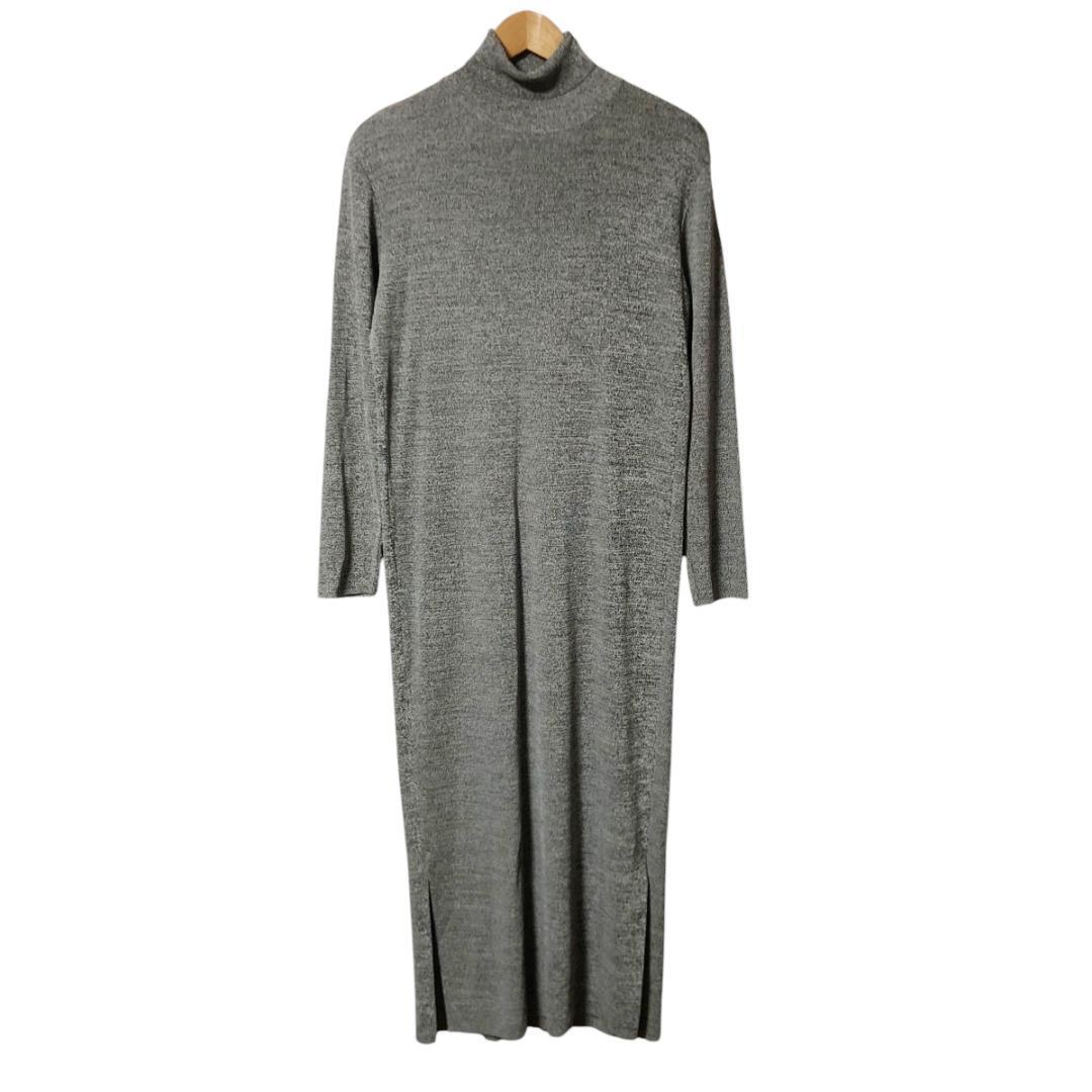 ISSEY MIYAKE PeRMANeNTe イッセイミヤケ ペルマネンテ タートルネック ロング ニットワンピース 長袖 スリット 2 グレー レディース M7