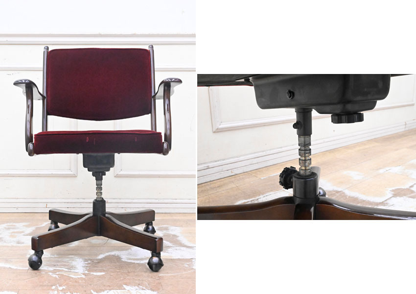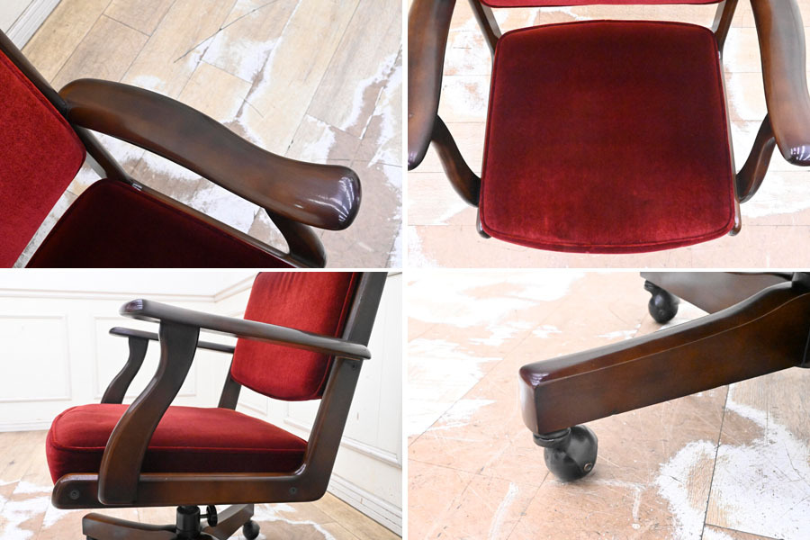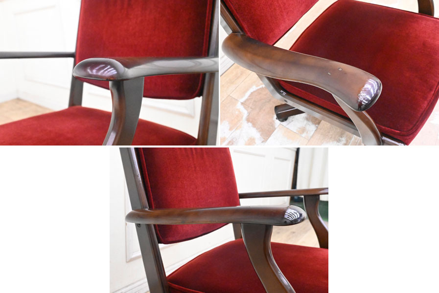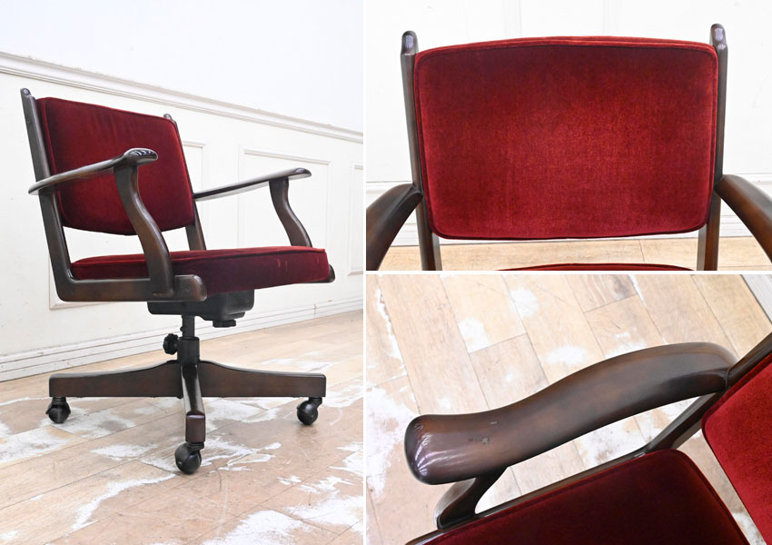 ----------------------------------------------------------------------------------------- ●送料や注意事項は必ずご確認下さい。落札後にトラブルになるケースが増えております。● ◆コンディションは写真・文章にて記載して有りますが、全てのキズの写真は掲載致しておりません。大きなダメージを除き見落とし、記載漏れが有る事はご了承下さい。 ◆当サイトにて出品する商品は多種多彩で、当方商品知識の無い物も多数ありますので落札後の質問やメンテナンス等にはお答えできません。 ◆入札された時点で、画像、文章をご理解していただいたものと判断させていただきます。不明な点は前もってQ&Aからお願い致します。入札後の質問やお電話等でのキャンセルは一切受け付け致しません。 ◆商品説明に「ノークレーム」と記載しているものに関しては、如何なる状況で届いても保証致しません。詳しくは注意事項の「商品到着後について」の最後に記載しておりますのでご確認下さい。 ---------------------------------------------------------------------------------------- 高級家具メーカーカリモクの超人気シリーズコロニアルのデスクチェア、中古品の出品です。 時代に流されないデザインは末永くお使い頂けるでしょう。 幅62.5 奥59 高78~85.5 座高42~50cm 【コンディション】 中古品ですのでキズ、ダコン、ヨゴレ、塗装剥がれ、座面前縁にシミ?、肘部塗装剥がれ等有ります。 | ||