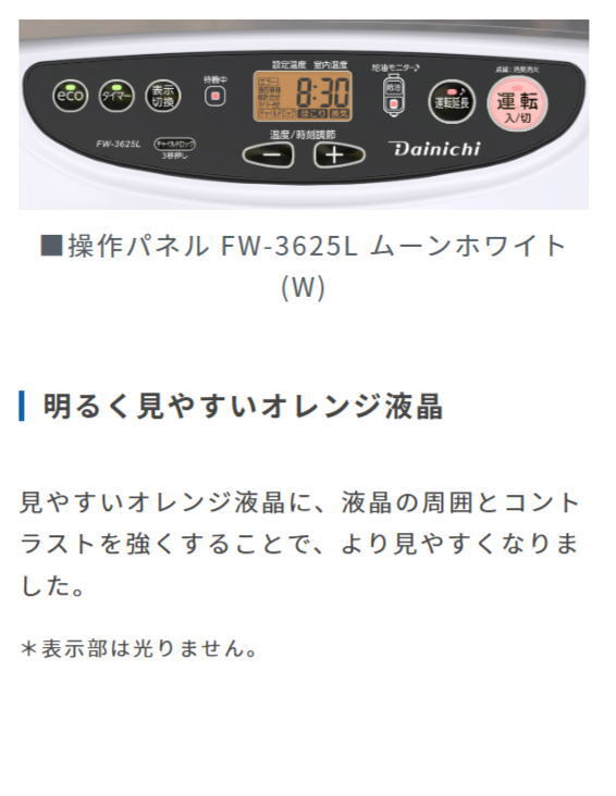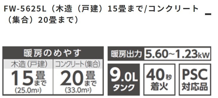 ●暖房のめやす:(木造)15畳まで(約25.0平米) / (コンクリート)20畳まで(約33.0平米)