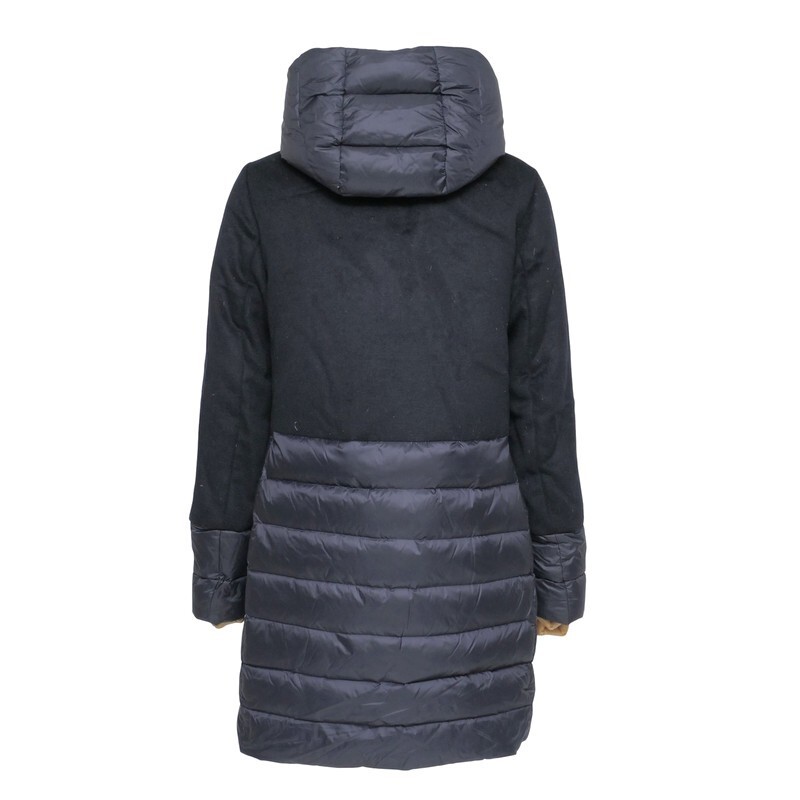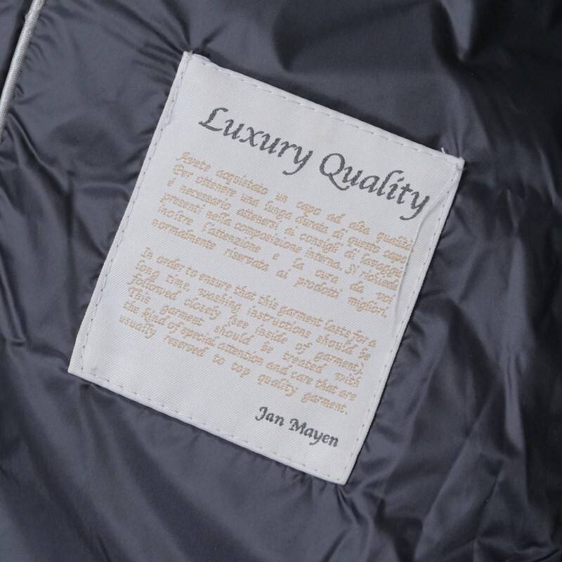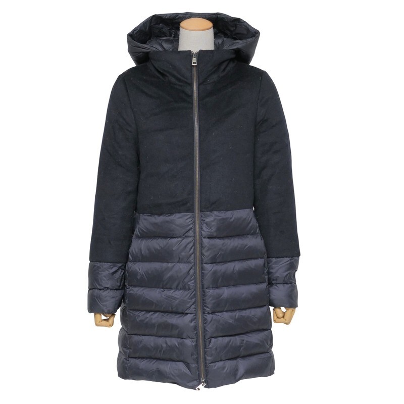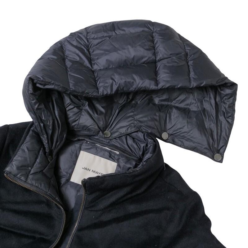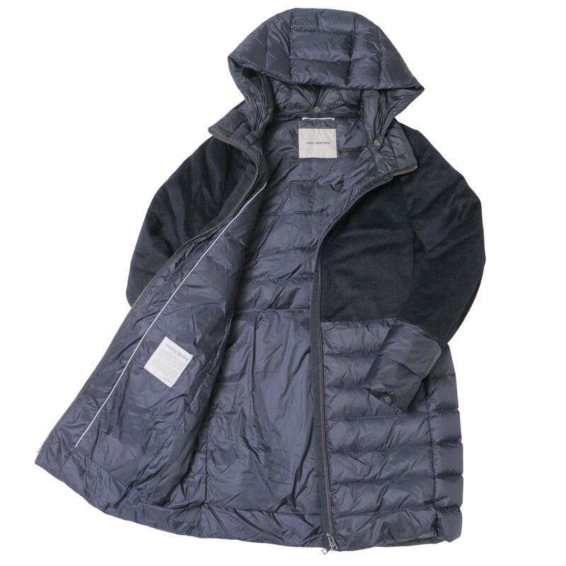 | MH6735□ヤンマイエン/JAN MAYEN ウール × 光沢生地 異素材切替 フード着脱可 ダウンコート サイズS~M相当 ネイビー系 | |||