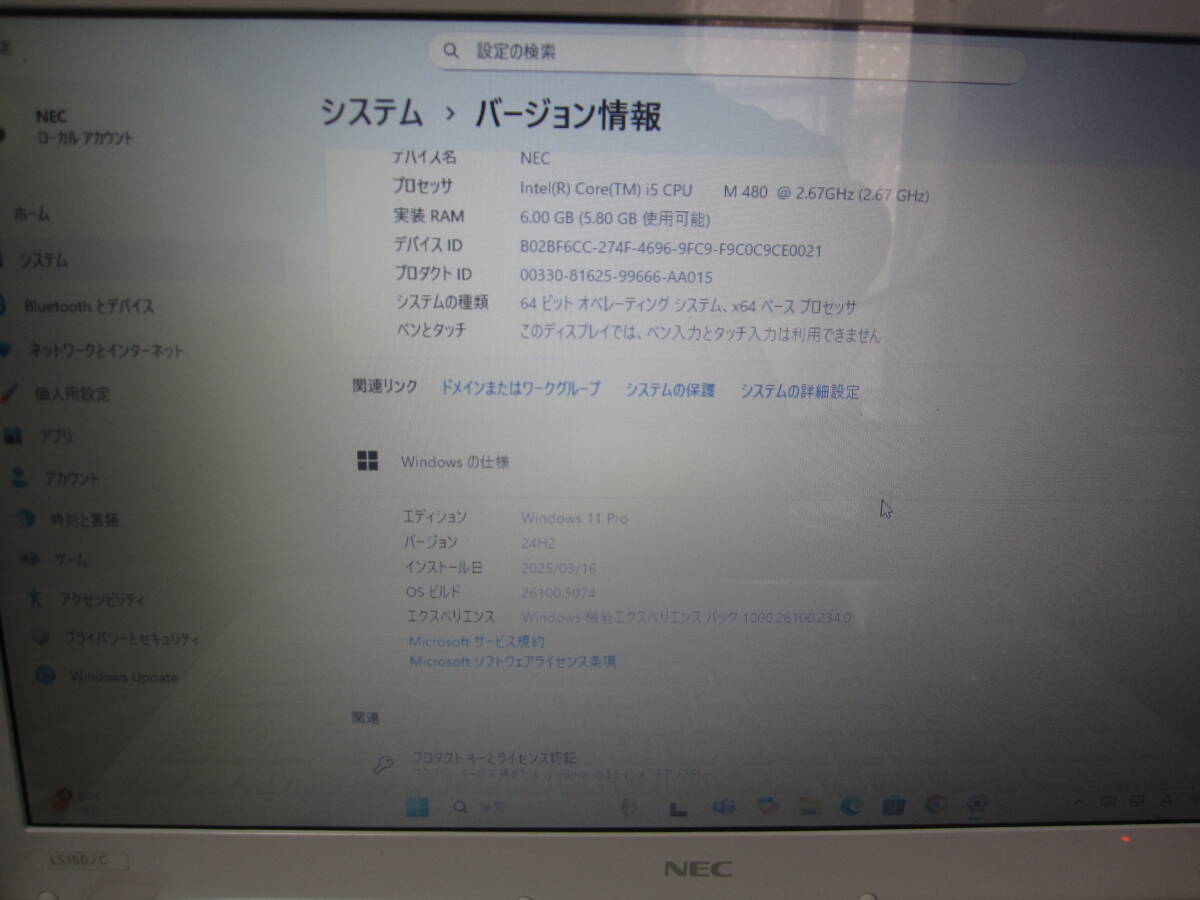 ★ 値下 PC-LS150CS1YW (スノーホワイト) Windows11インストール 結構綺麗です。cpu i5