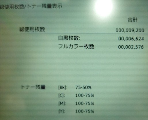 | トータルカウンター | フルカラー:2,576 枚 モノカラー:6,624 枚 ※落札後発送前に動作確認を再度行いますので、カウンター・トナー残量の数値が多少変動します。ご了承下さい。 | ||