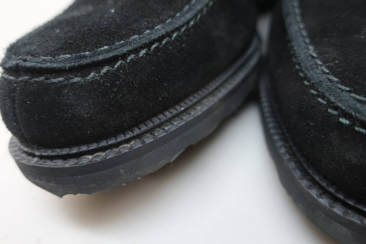 外側:汚れ、擦れ、白っぽさ、スエードの毛羽立ち、ややへこみなど感じます。