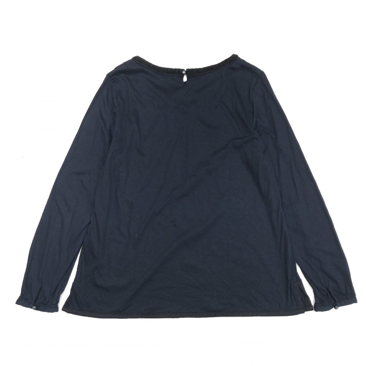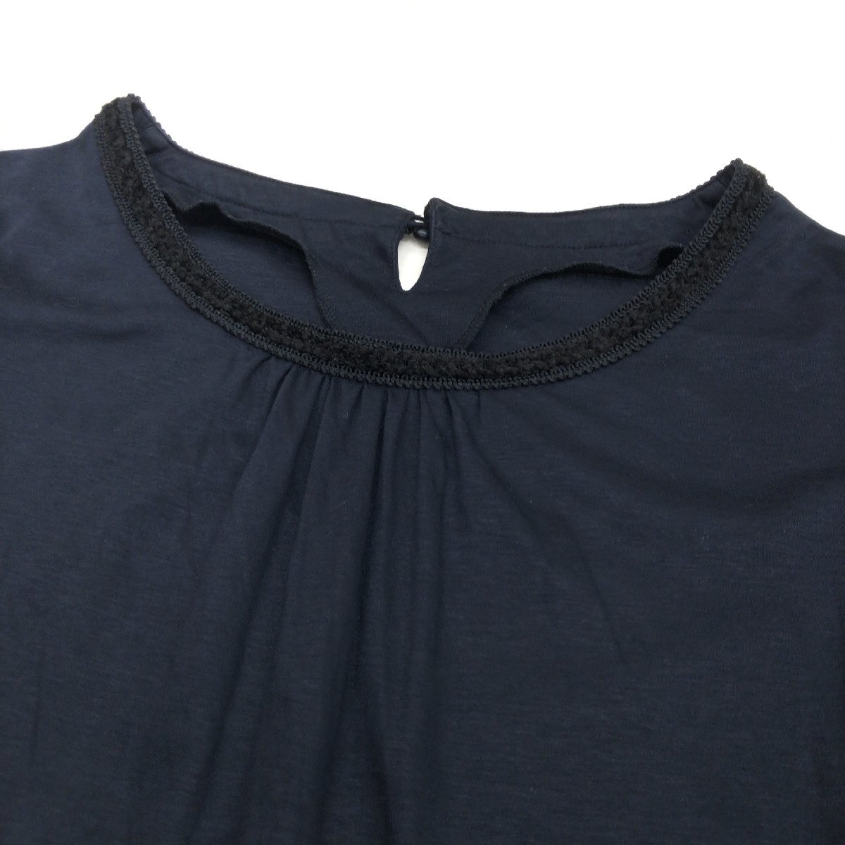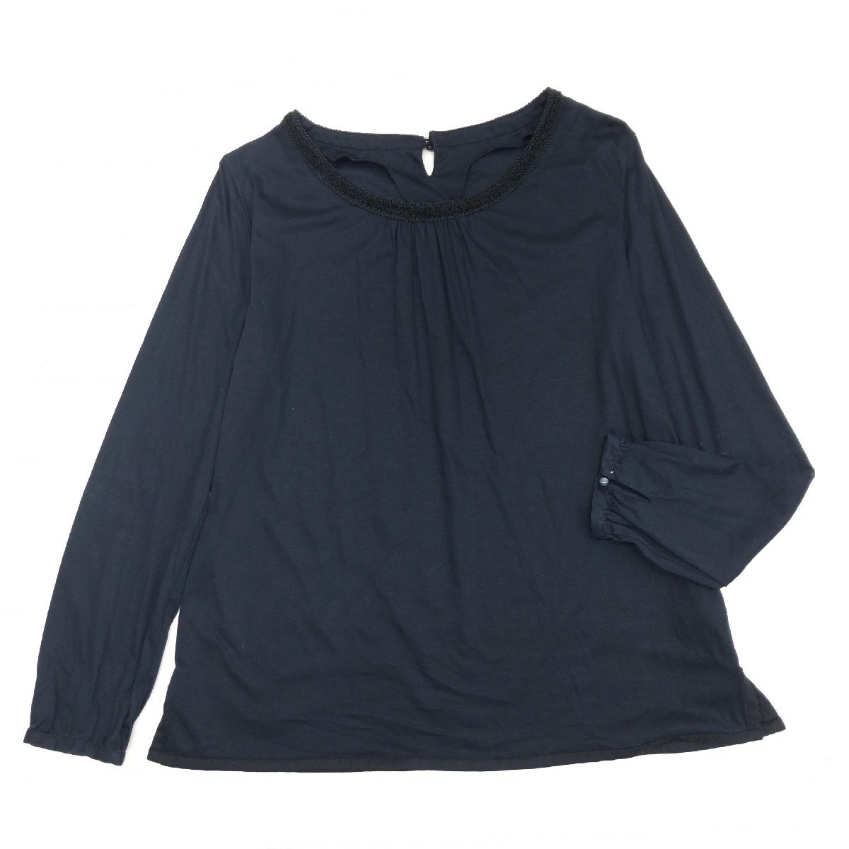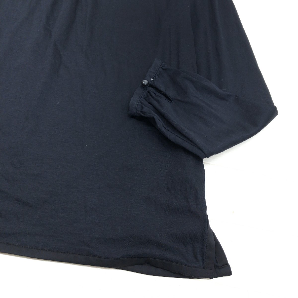 NEWYORKER ニューヨーカー オープンネック ギャザー カットソー 17(3XL) 黒系 ブラック Tシャツ ロンT 長袖 4L ゆったり 大きい レディース