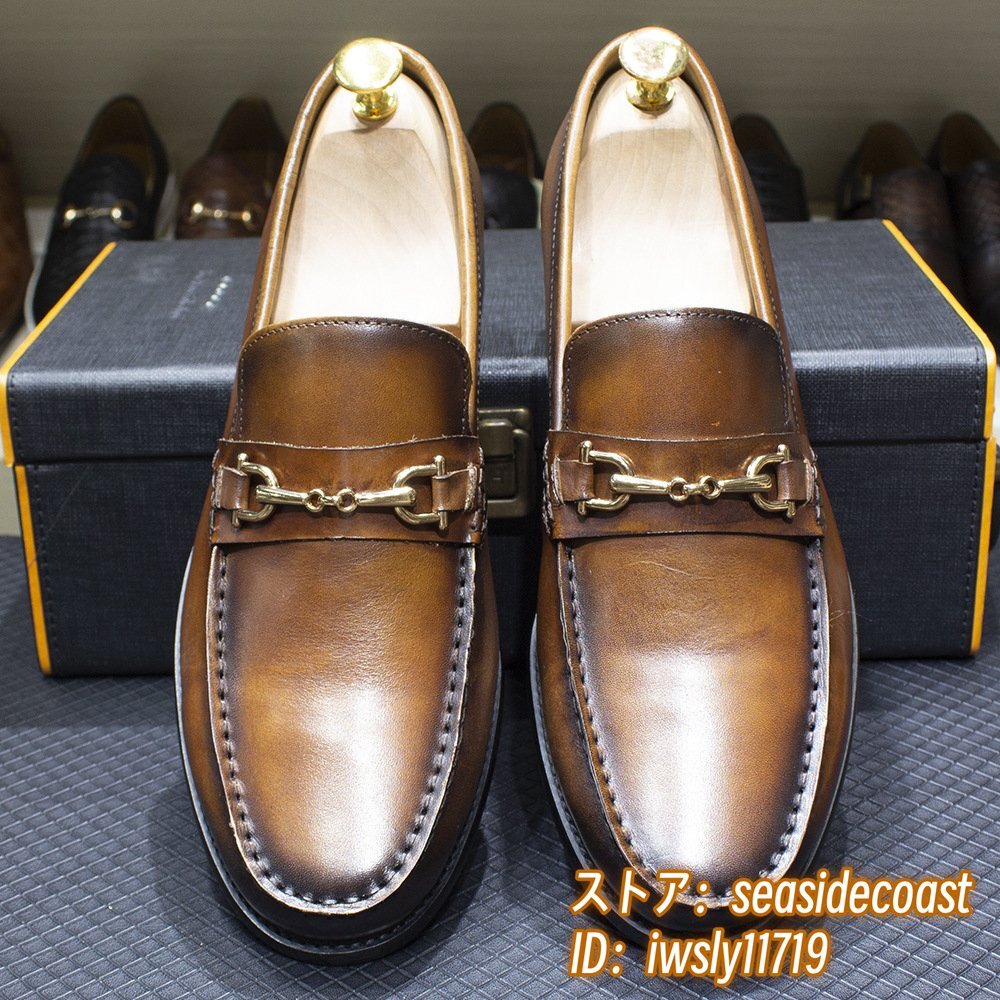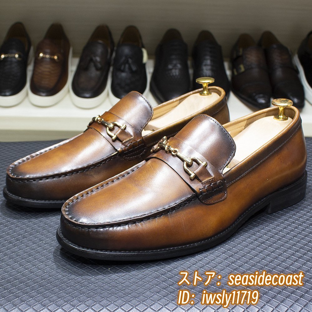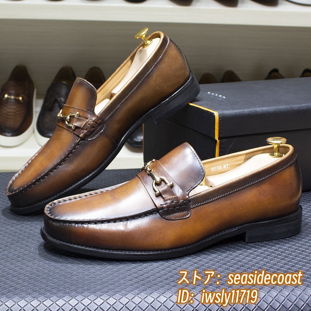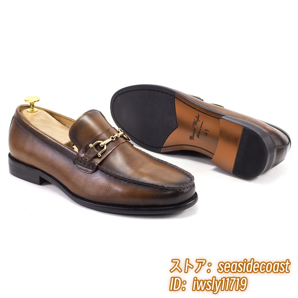 定価10万超■ビジネスシューズ メンズ 牛革 職人手作り ローファー 本革 スリッポン レザーシューズ 紳士靴 革靴 超美品 ブラウン 27.5cm