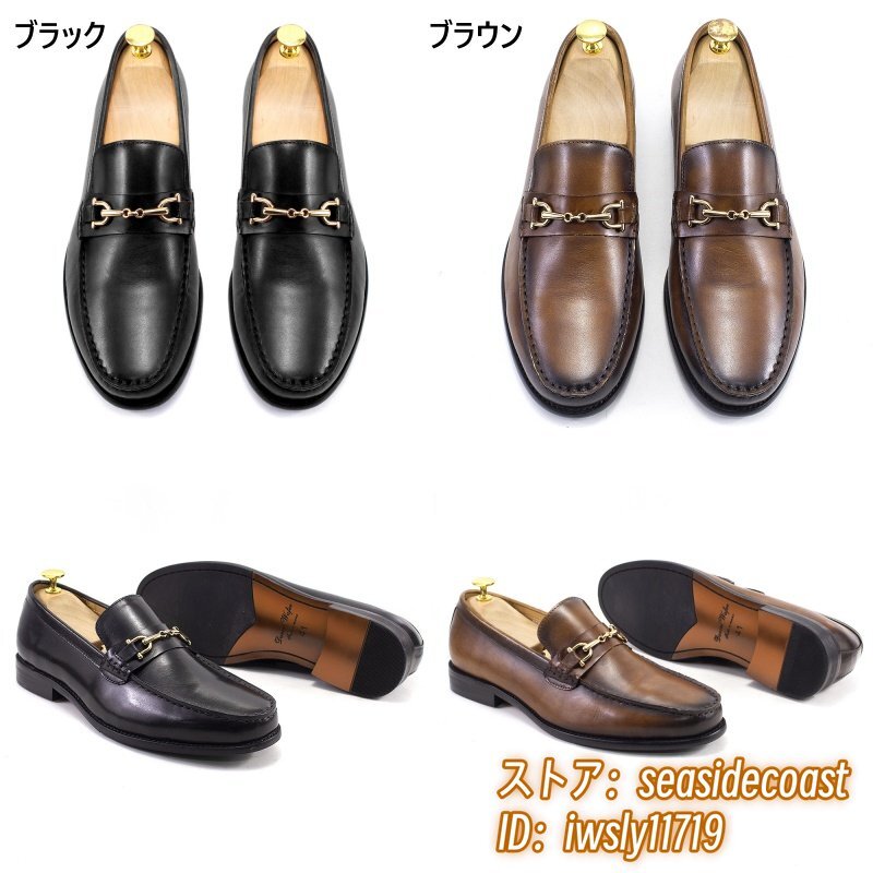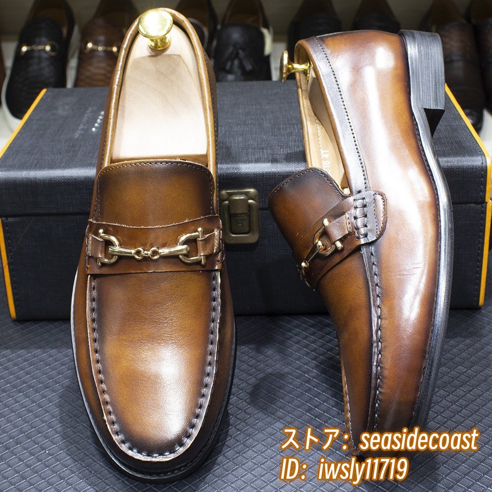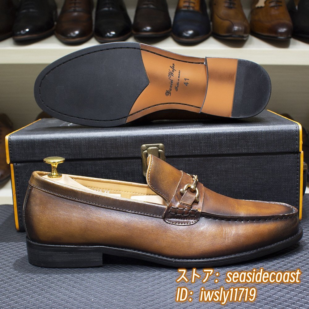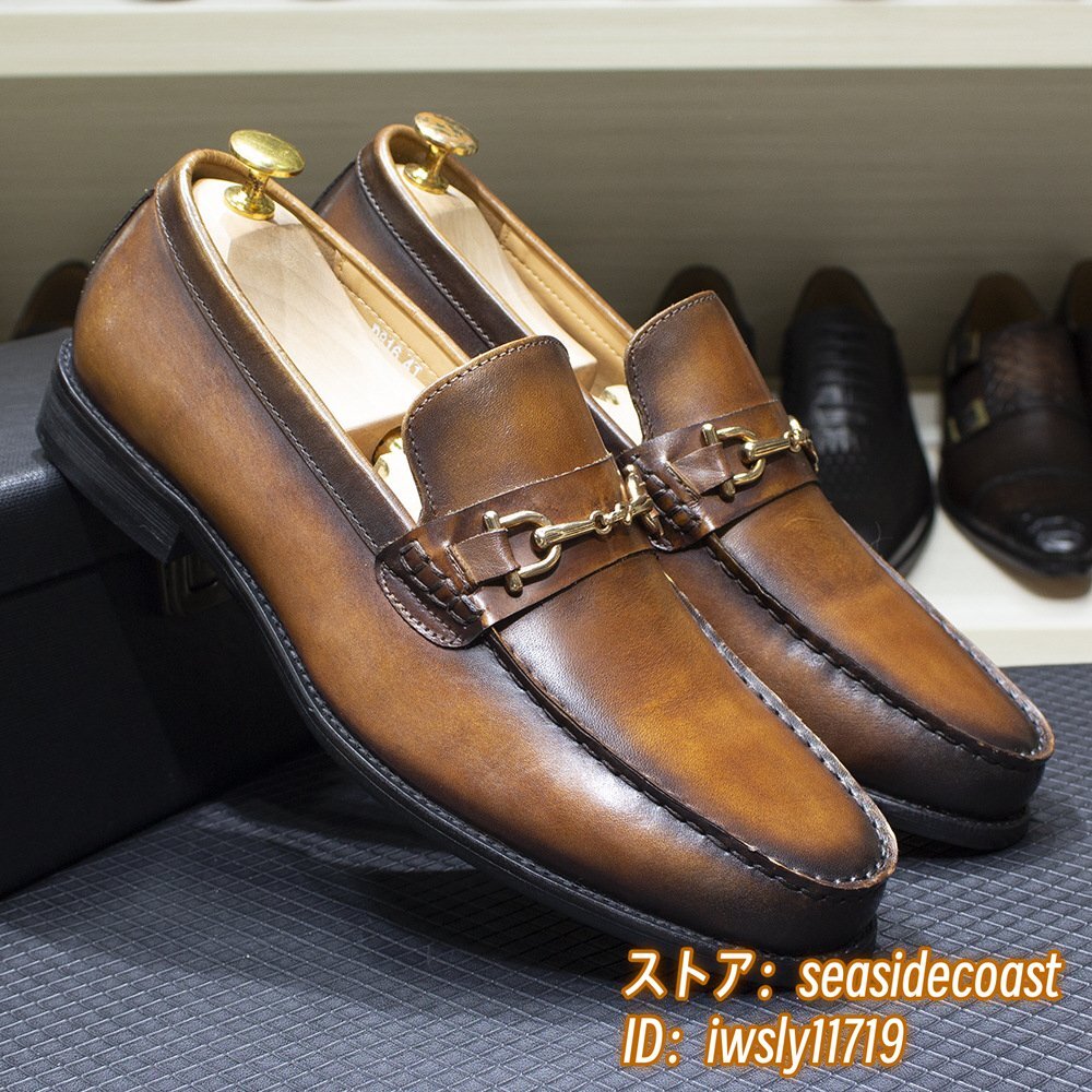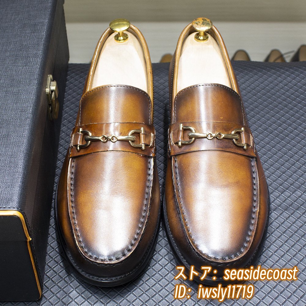 定価10万超■ビジネスシューズ メンズ 牛革 職人手作り ローファー 本革 スリッポン レザーシューズ 紳士靴 革靴 超美品 ブラウン 27.5cm