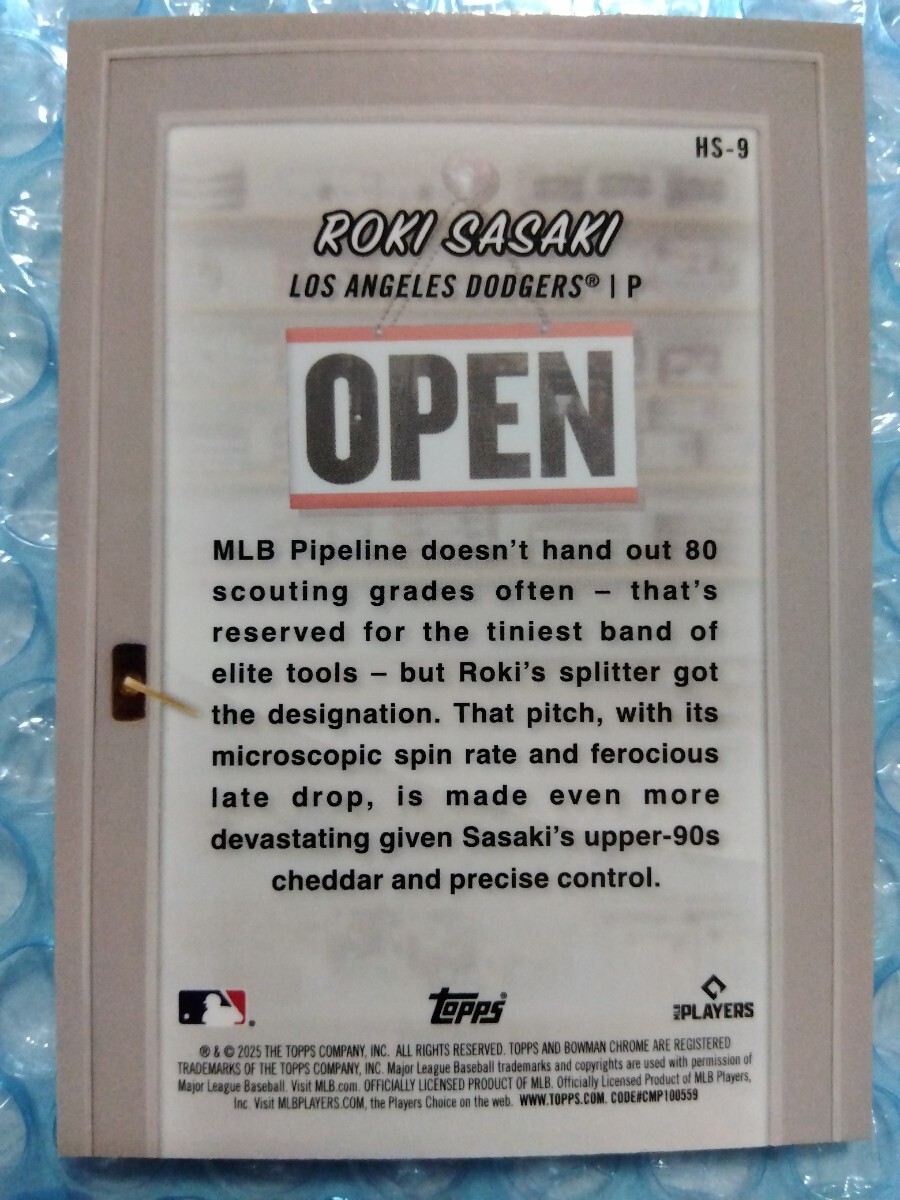 ロサンゼルスドジャース所属、佐々木朗希選手のカードです。
