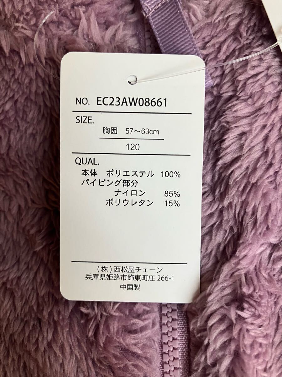 新品 女の子 キッズ 西松屋 もこもこ ボア アウター 120センチ 紫