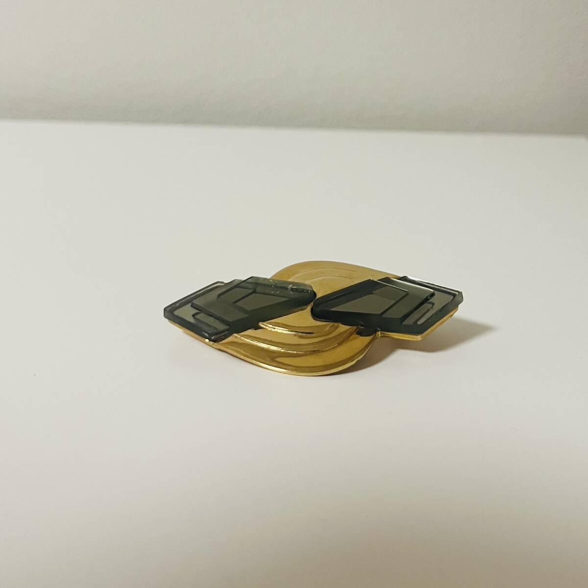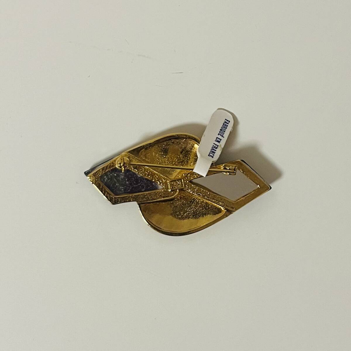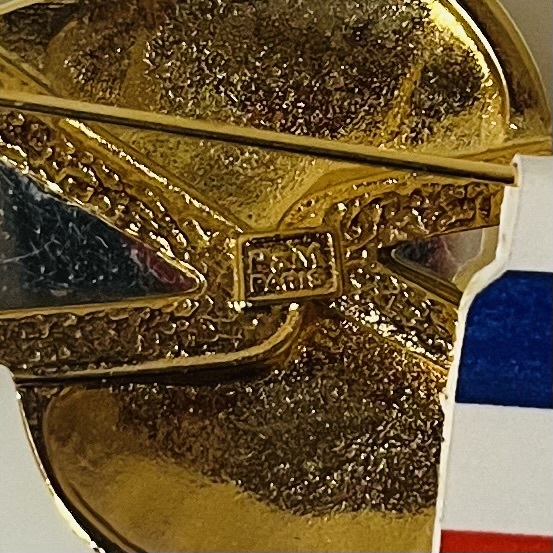 462 P&M Paris アンティーク ビンテージ コスチュームアクセサリー ブローチ タグ付き 刻印入り 未使用保管品! ゴールドカラー ガラス