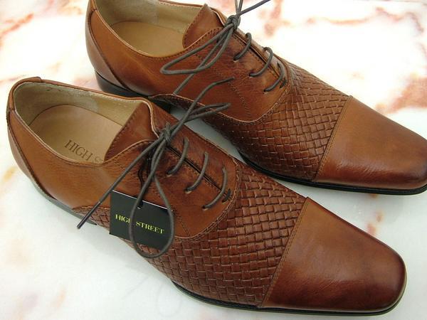 新品 L ハイストリート 本革レザーシューズ ストレートチップ 茶 メッシュ