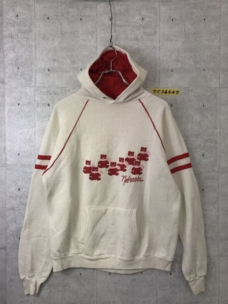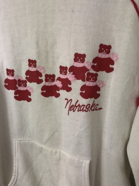 JERZEES BY RUSSELL ジャージーズ レディース USA製 くまプリント スウェットプルパーカー 大きいサイズ XL 白 です。