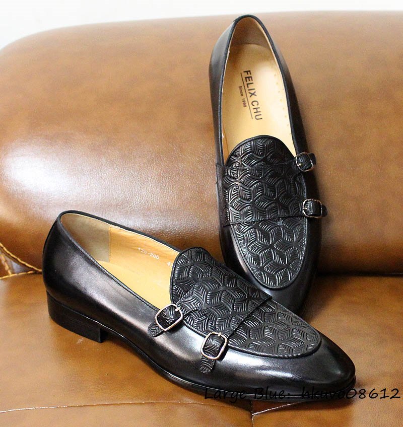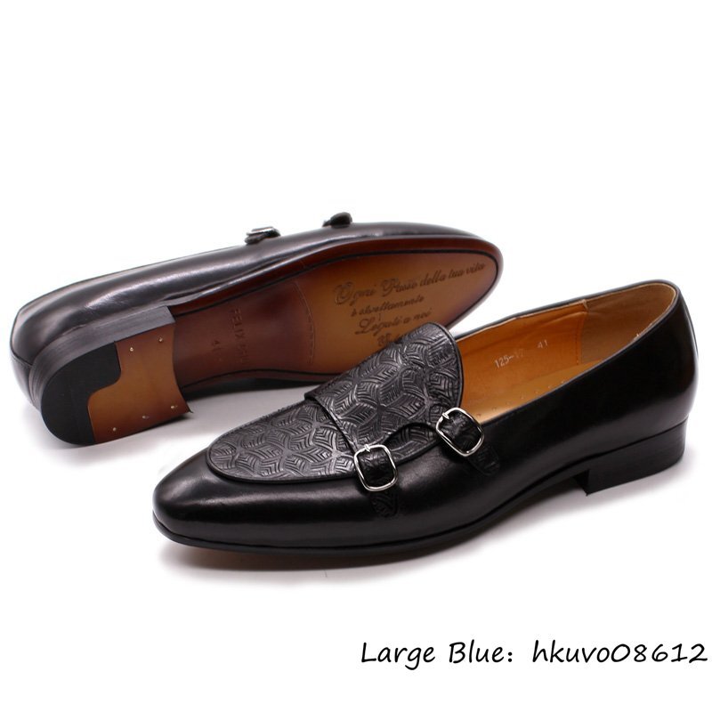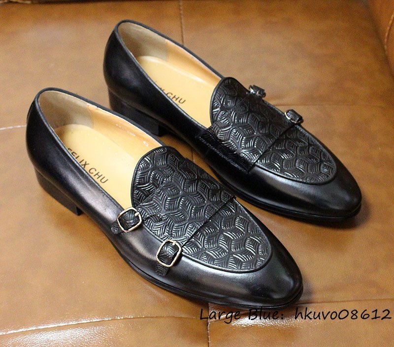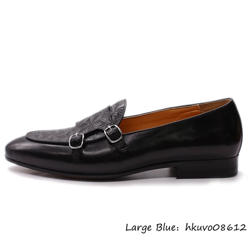 最高級★定価9万 超希少 牛革 ダブルモンクストラップ 職人手作り 本革 ビジネスシューズ レザーシューズ 革靴 紳士靴 通勤靴 宴会 25.0cm
