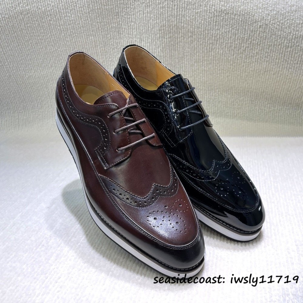 入手困難★スニーカー 本革 メンズ ビジネスシューズ 職人手作り 彫り レザーシューズ 革靴 イギリス風 紳士靴 高級牛革 ブラック 24.5cm