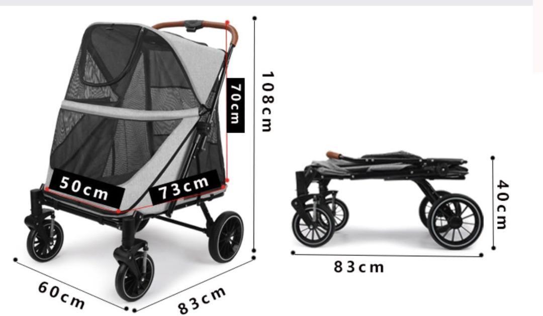 【ワンタッチで簡単折りたたみ&収納便利】犬用バギー1秒でワンタッチ重力折りたたみ可能。収納時は厚さ15cmまでコンパクトに折りたため(※参考:詳細ページ折りたたみ方法②)、ブレーキ部のフレームと車輪を取り付けるだけで1分くらいで組み立てが完了します。$$11000