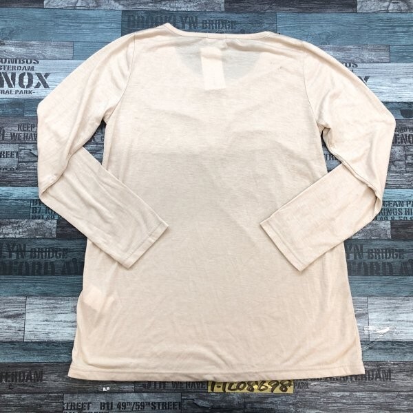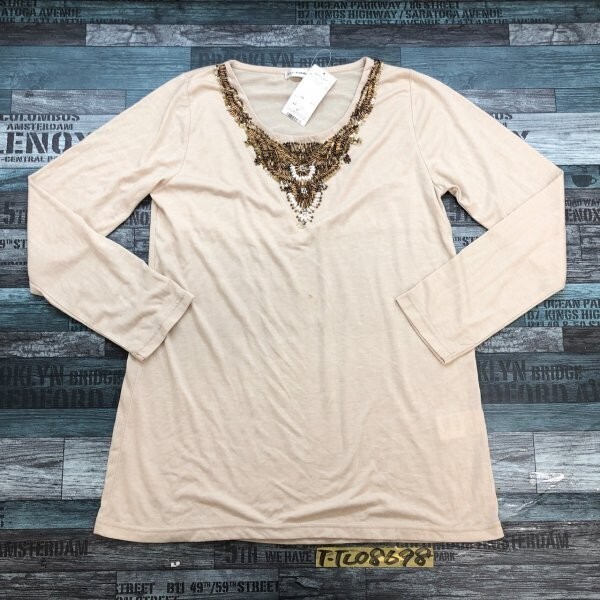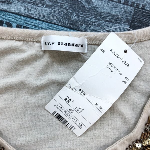 訳あり新品!a.v.v standard アーヴェヴェ レディース ビジュー付きネック ロンT 40 カーキベージュ です。