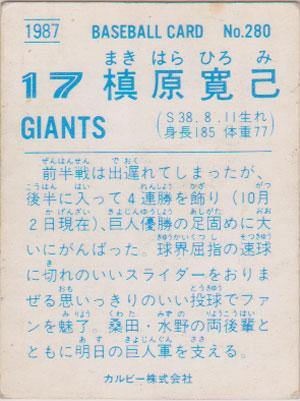 ★トレカ★1987年カルビー【#280 槙原寛巳】★