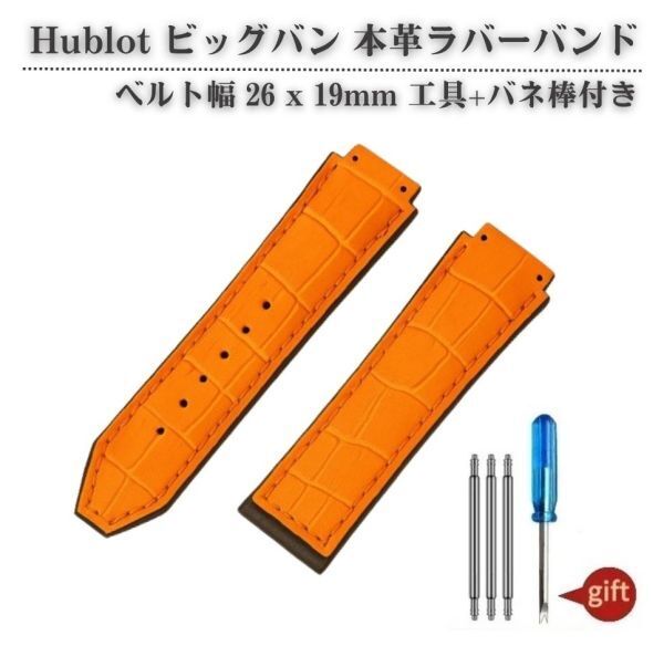 Hublot ウブロ ビッグバン 44mm ケース用 26x19mm 本革 レザー + ラバー 時計 バンド 腕時計 社外品 H型ドライバーセット オレンジ WB016