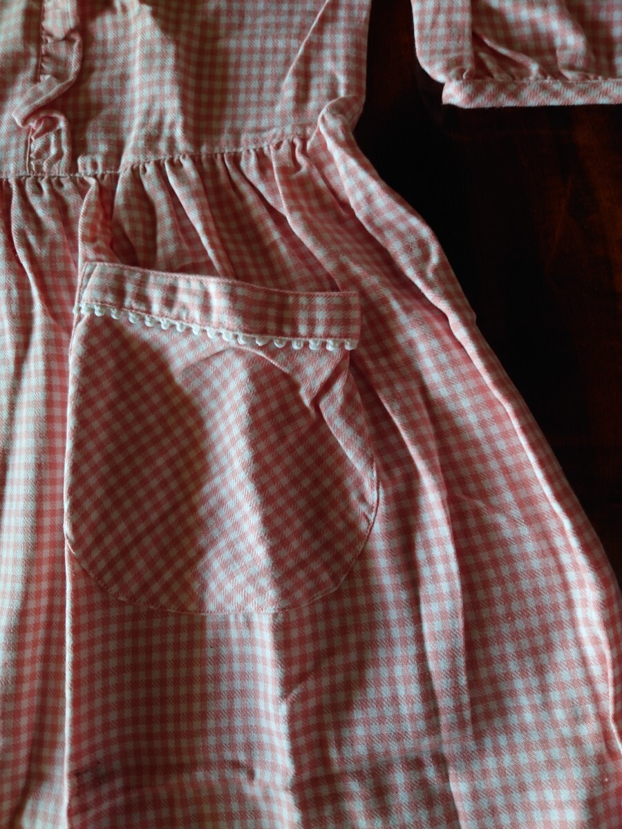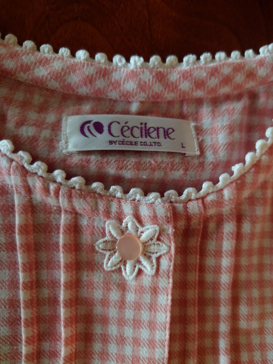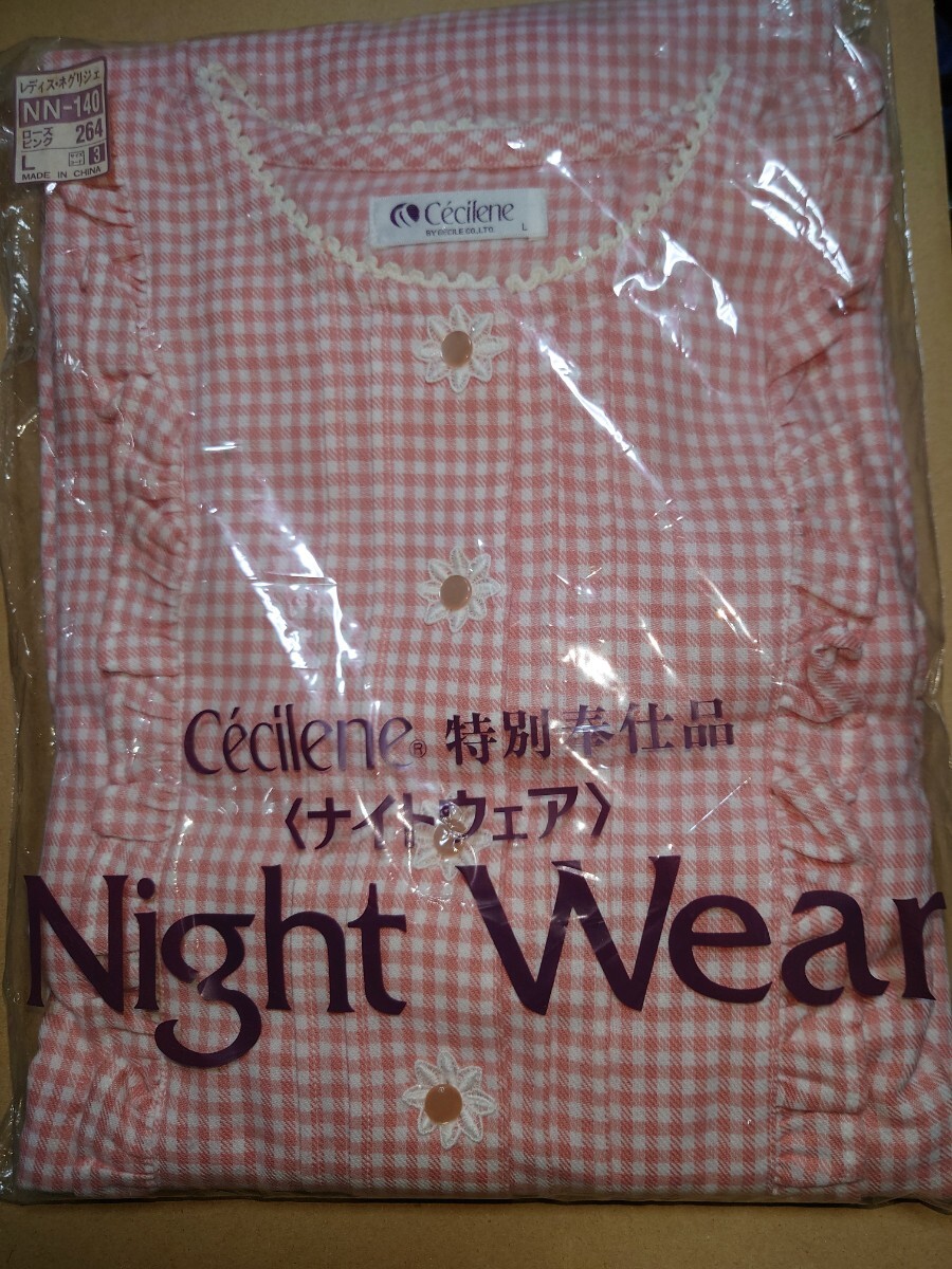 【新品未使用】フリル付き<レディースナイトウェア> <ルームウェア>< ルームワンピース> ローズピン×白チェック 綿100% L ローウエスト切替 可愛い