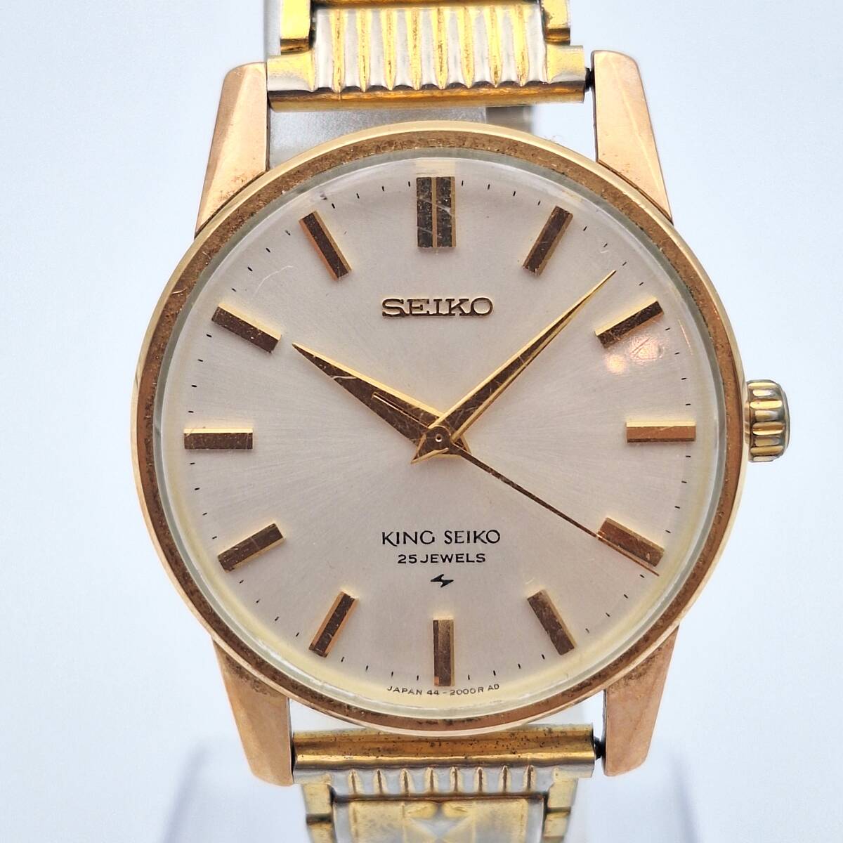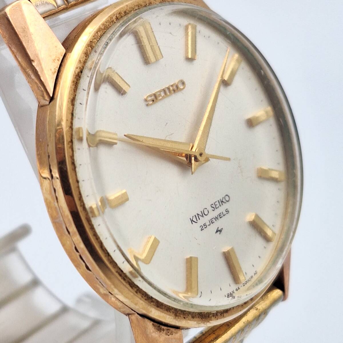 KING SEIKO キングセイコー 44-2000 25JEWELS セカンド 亀戸 盾メダリオン 手巻き 25石 腕時計 手巻き 稼働 ゴールド 白文字盤 【9985】