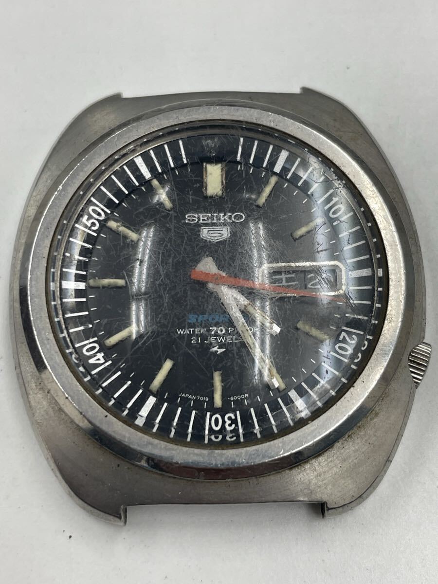 29.不動品・SEIKO セイコー 5 スポーツ 7019-6000 SS 自動巻き 黒文字盤 メンズ 腕時計 デイデイト//IWA85