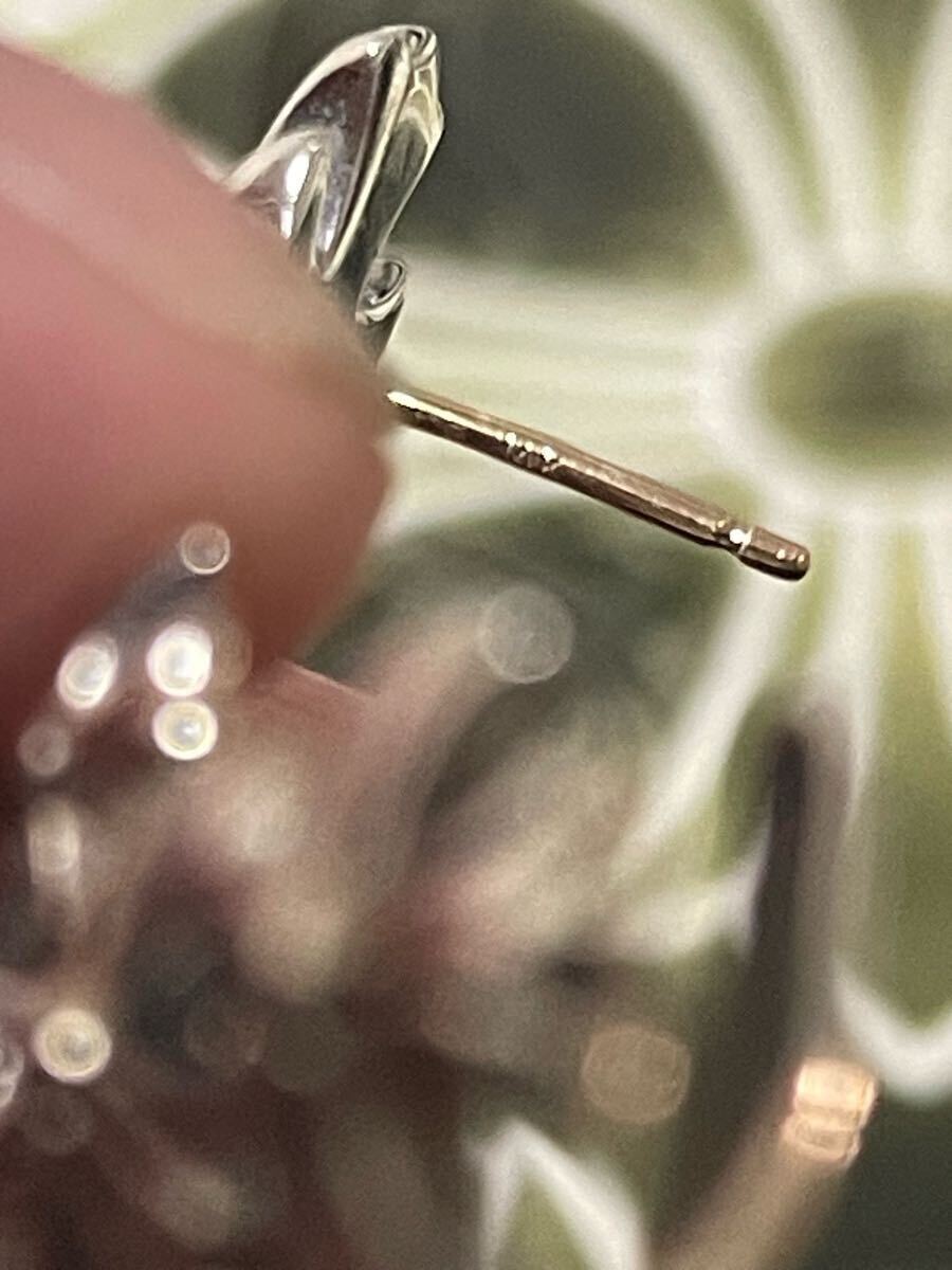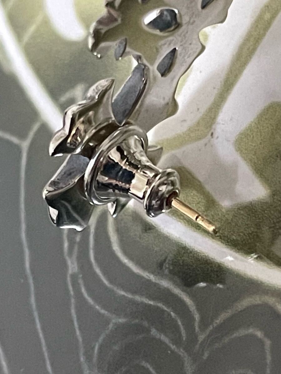 ピアスホールに挿し、フックを耳に引っ掛けて装着する、耳に沿うデザインです。