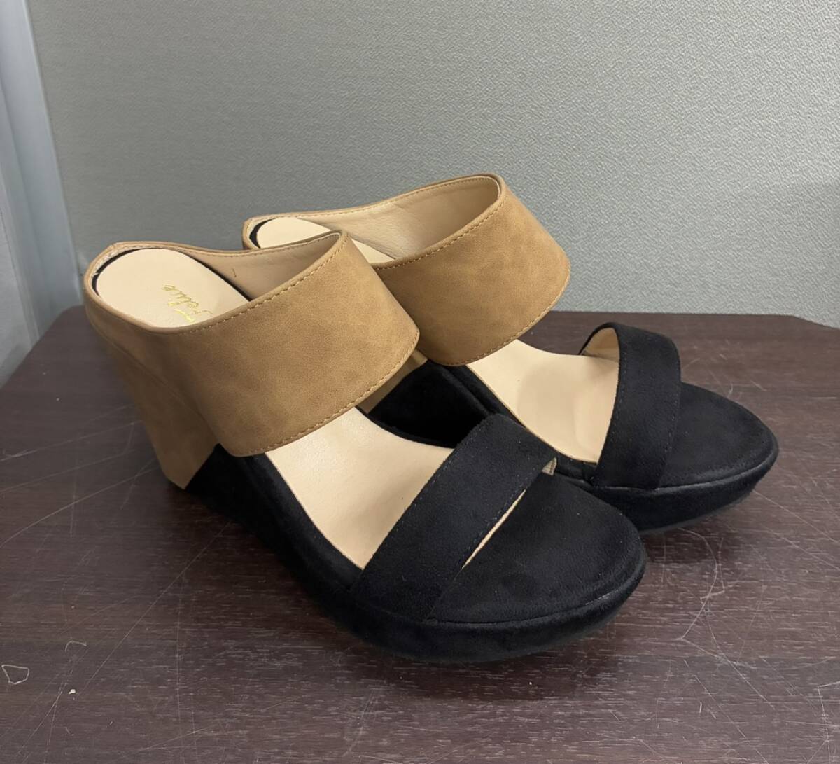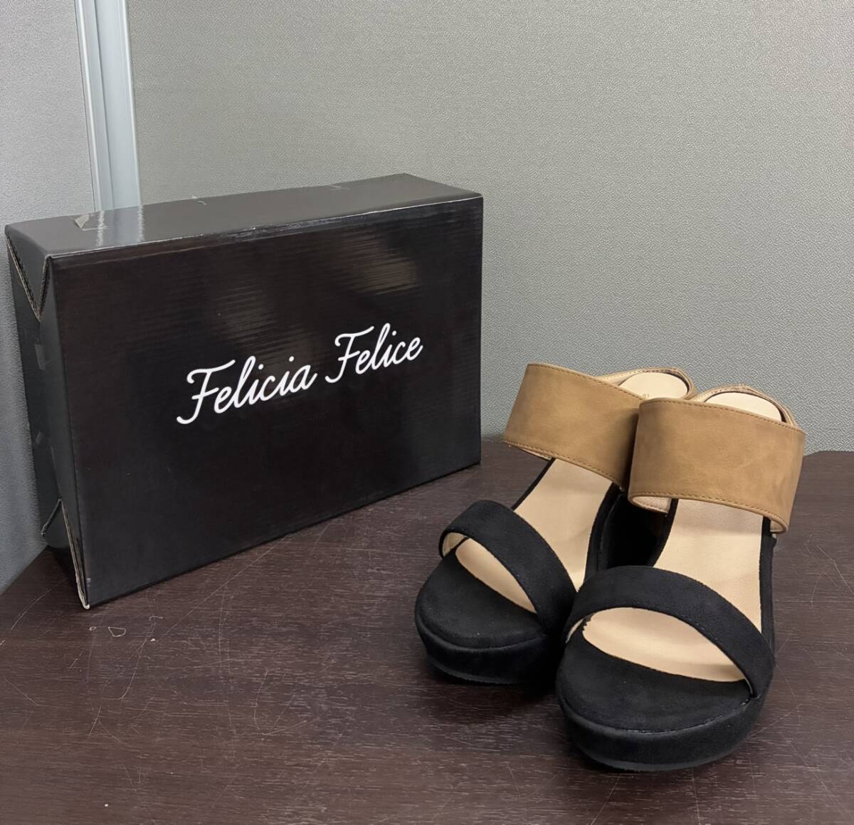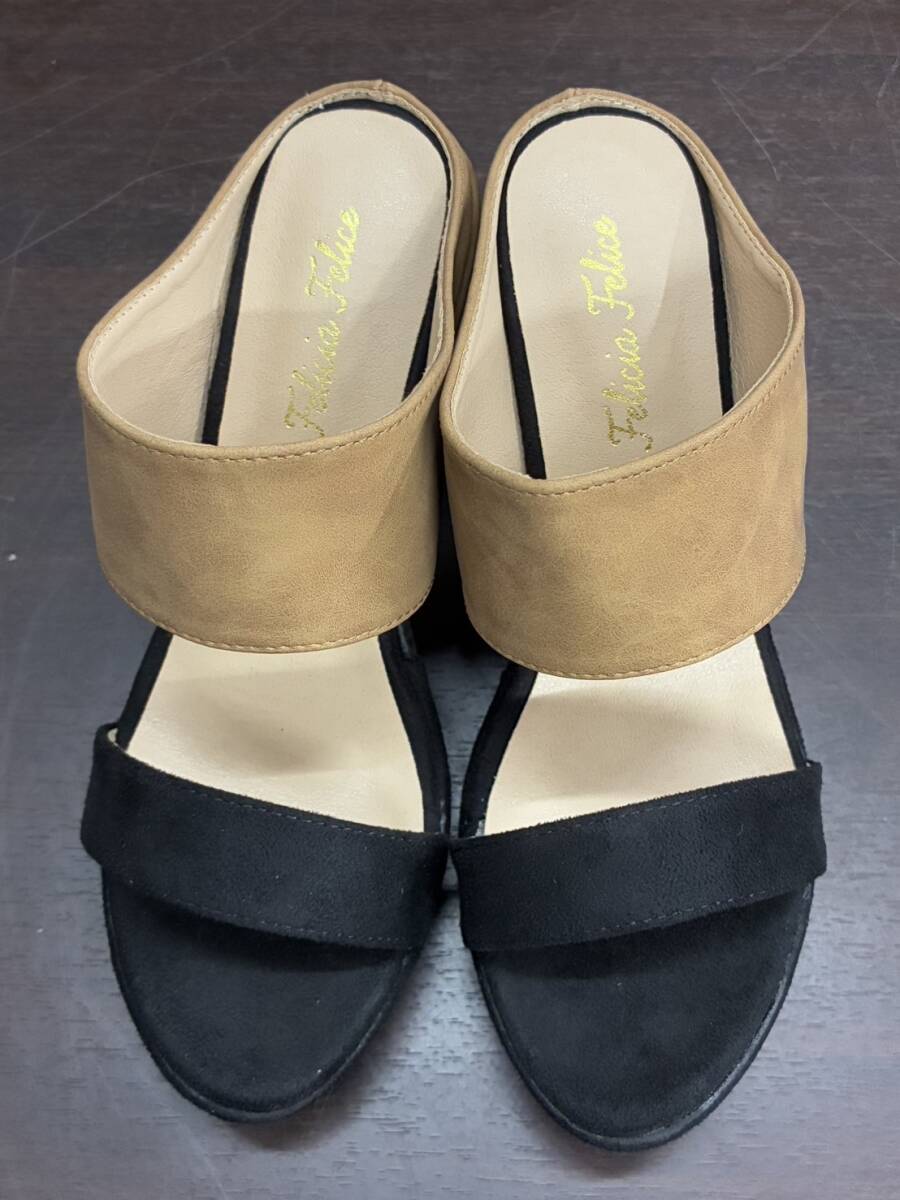 [商品名] | 送料無料h9027 Felicia Felice フェリシア フェリーチェ サンダル ブラック×ベージュのバイカラー ウェッジソール スウェード サイズLL レディース ミュール 未使用 | |||||||||