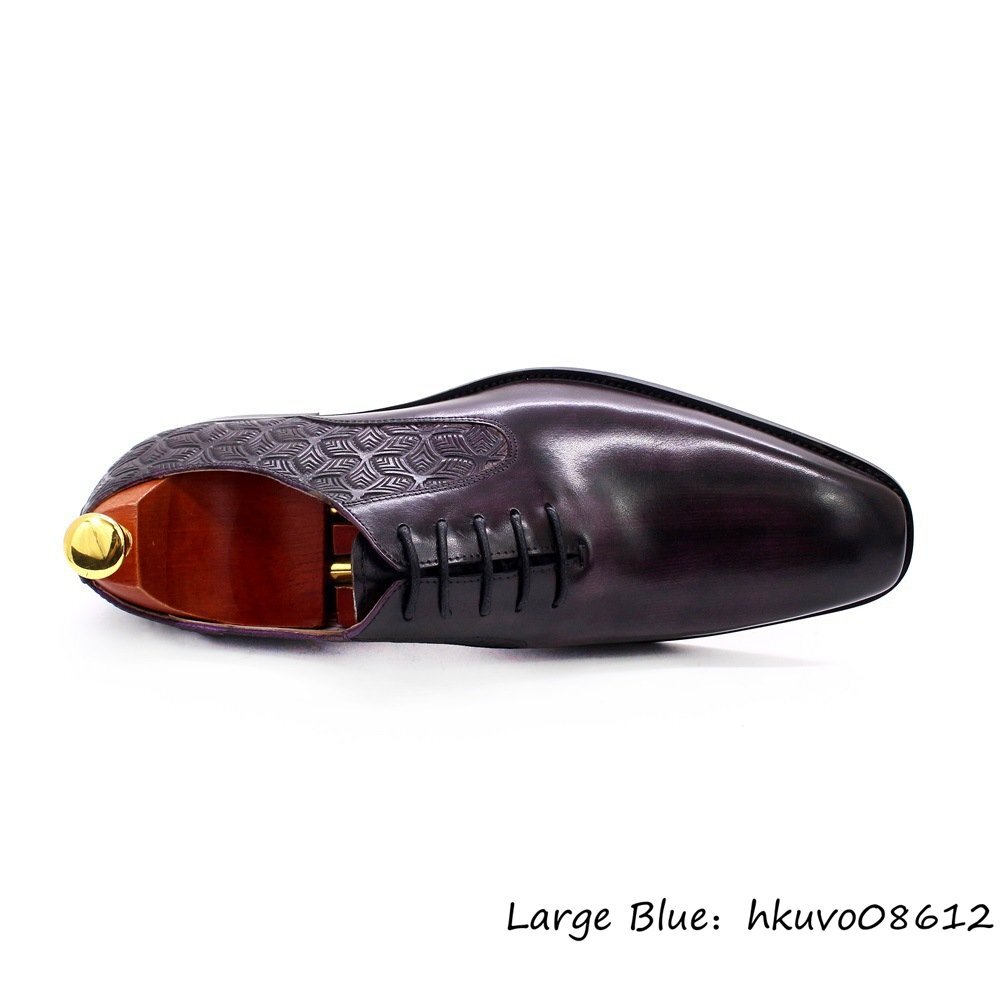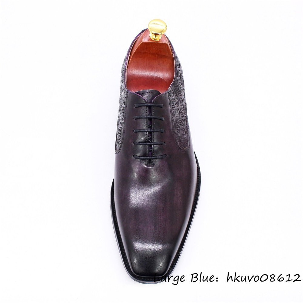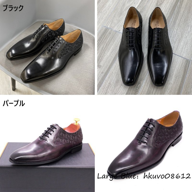 定価9万超◆最高級 本革 ビジネスシューズ メンズ 牛革 レザーシューズ 紳士靴 革靴 職人手塗り上げ 冠婚葬祭 フォーマル パープル 25.0cm